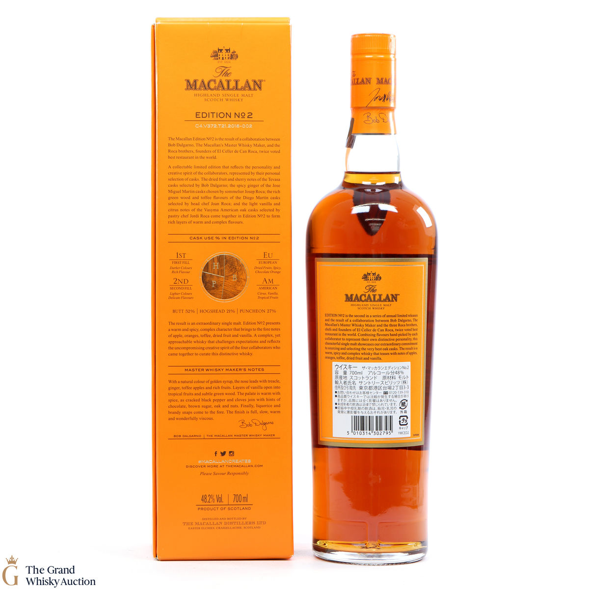 This is the second release from the Macallan Edition series. Edition No.2 is a collaboration between Macallan's master blender Bob Delgarno and legendary Spanish chefs Joan, Josep, and Jordi Roca. The Rocas are the three brothers behind El Celler de Can Roca (named Best Restaurant in the World twice by Restaurant magazine). This single malt was drawn from a combination of sherry puncheons, butts, and refill hogsheads.