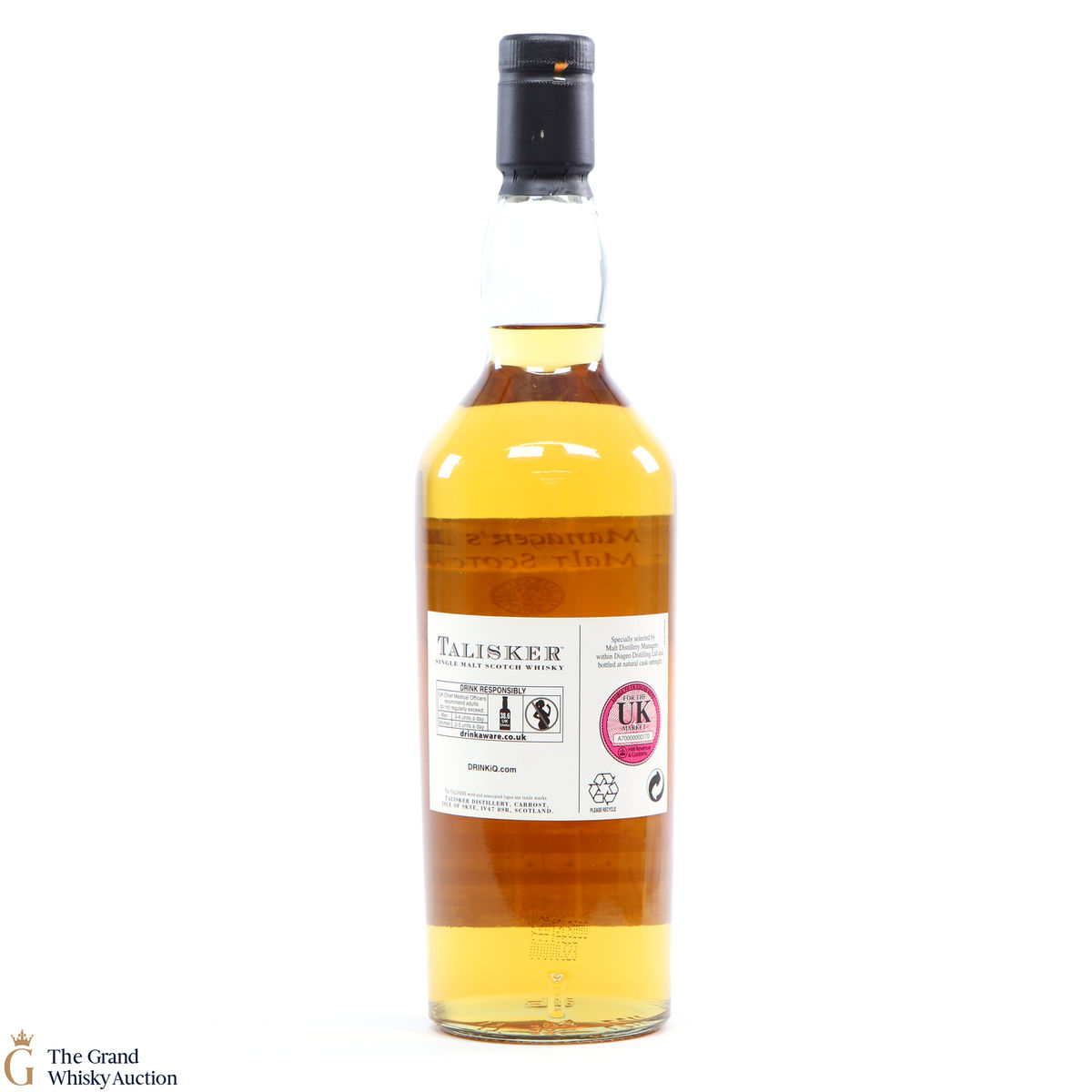 A rare Talisker single malt whisky bottled in 2011 for Diageo staff, at natural cask strength. The malt was specially selected by distillery managers within Diageo and bottled at 55.2%. This is an individually numbered bottle.