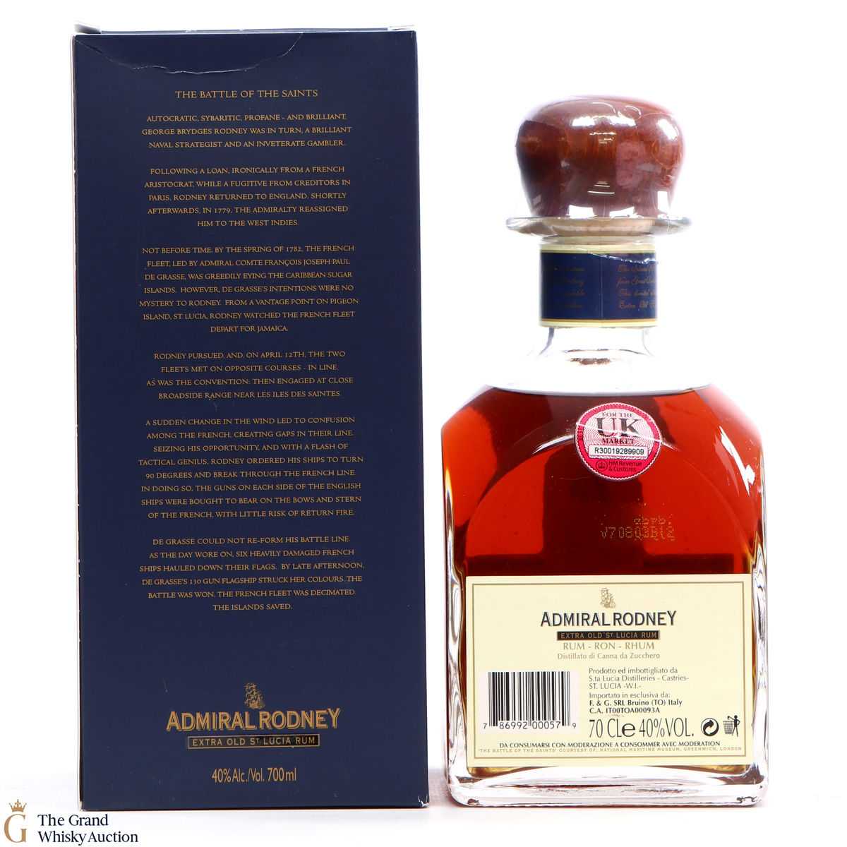 Admiral Rodney is one of the world’s finest rums. Made from 100% continuous still rums, Admiral Rodney is St. Lucia Distillers flagship in terms of age and complexity. The rum commemorates the English Admiral Rodney who famously “broke the line” and vanquished the French fleet at the Battle of the Saints in 1782.