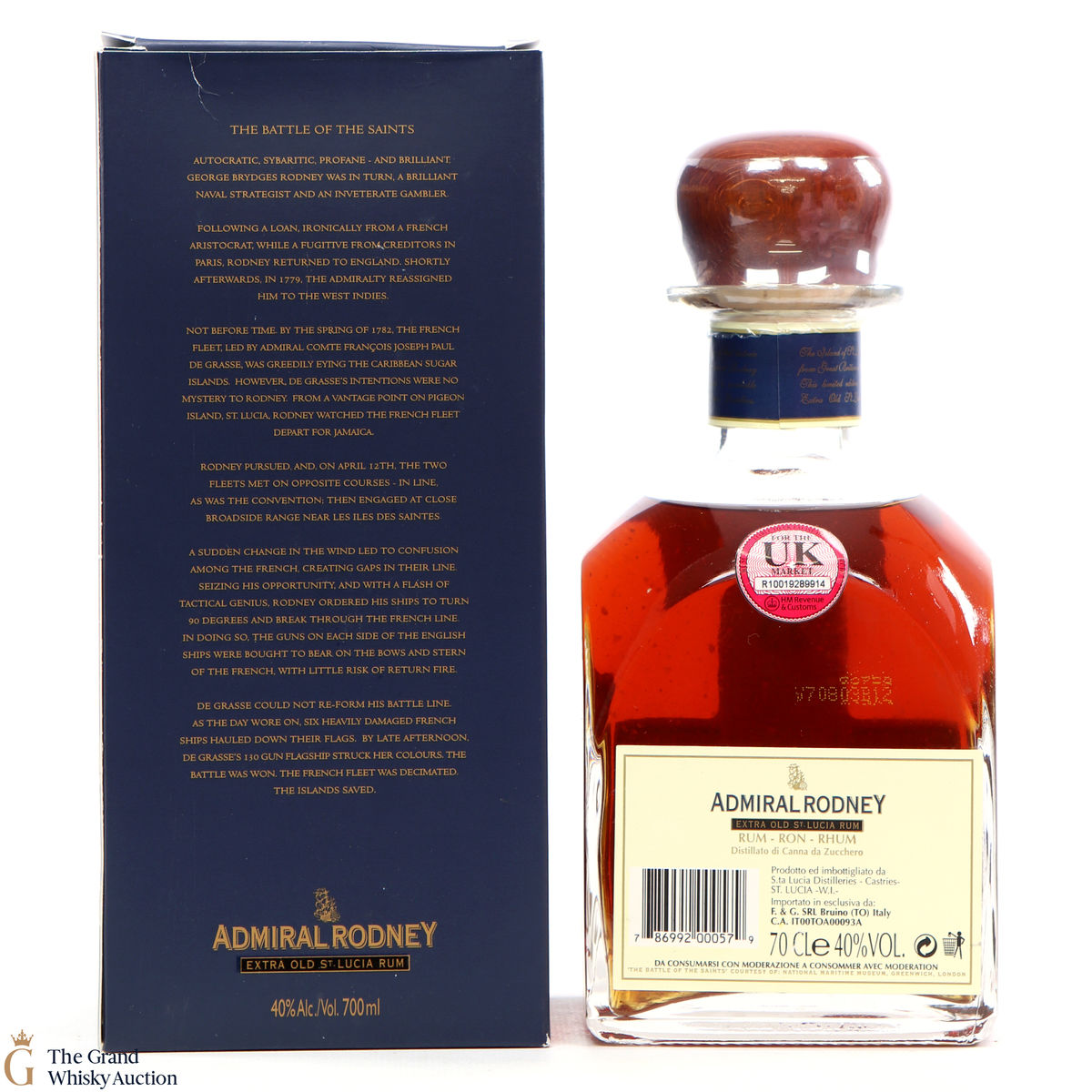 Admiral Rodney is one of the world’s finest rums. Made from 100% continuous still rums, Admiral Rodney is St. Lucia Distillers flagship in terms of age and complexity. The rum commemorates the English Admiral Rodney who famously “broke the line” and vanquished the French fleet at the Battle of the Saints in 1782.