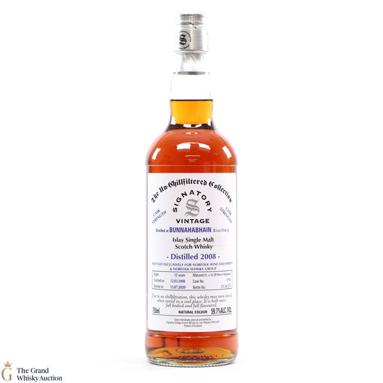 From the North coast of Islay, this Bunnahabhain was distilled on the 12th of March 2008 and bottled 12 years later on the 15th of July 2020. Maturation took place in a first fill sherry cask #1158. Only 275 bottles were produced by Signatory and released at cask strength.