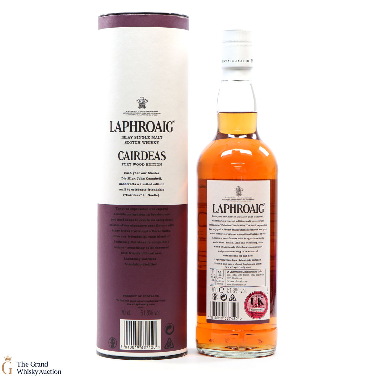 This expression was bottled in 2013 and includes double matured Laphroaig from bourbon and port wood casks to create an exceptional balance of their signature peat flavour with tangy citrus fruits and a floral finish.