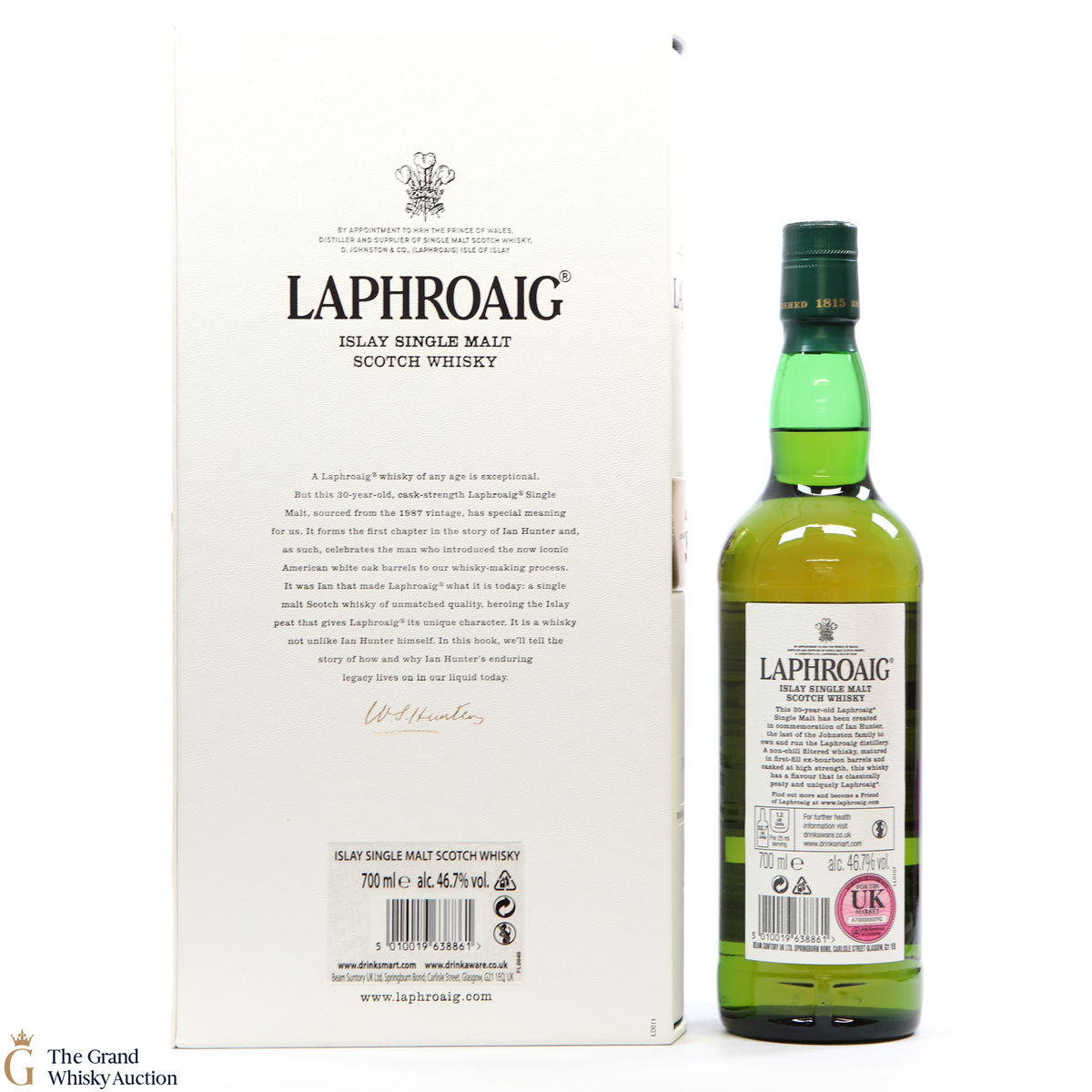This is a 30 year old cask strength bottling from the 1987 vintage. This bottle forms the first chapter to the story of Ian Hunter and celebrates the man who introduced the iconic American white Oak barrels to the whisky making at Laphroaig. It is said that it was Ian who made Laphroaig what it is today.