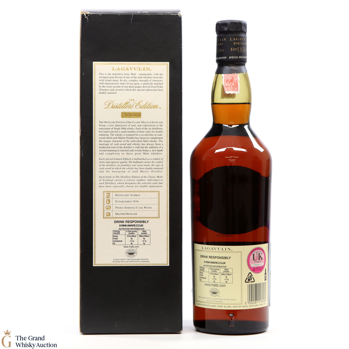 Lagavulin 1993 Distillers Edition was double matured and was bottled in 2009 at 43% ABV. Lagavulin is the most sought after bottling of the Distiller’s Edition range.