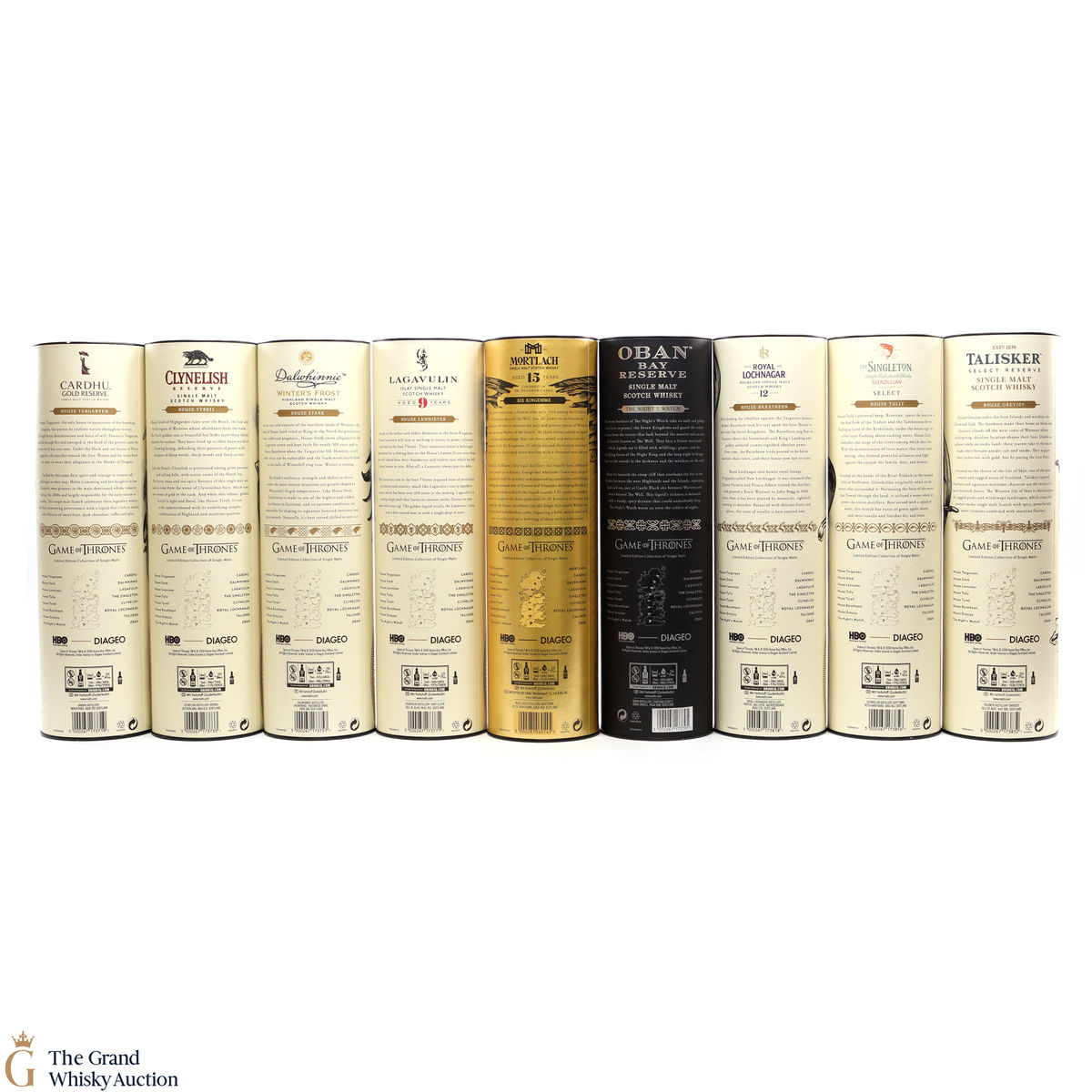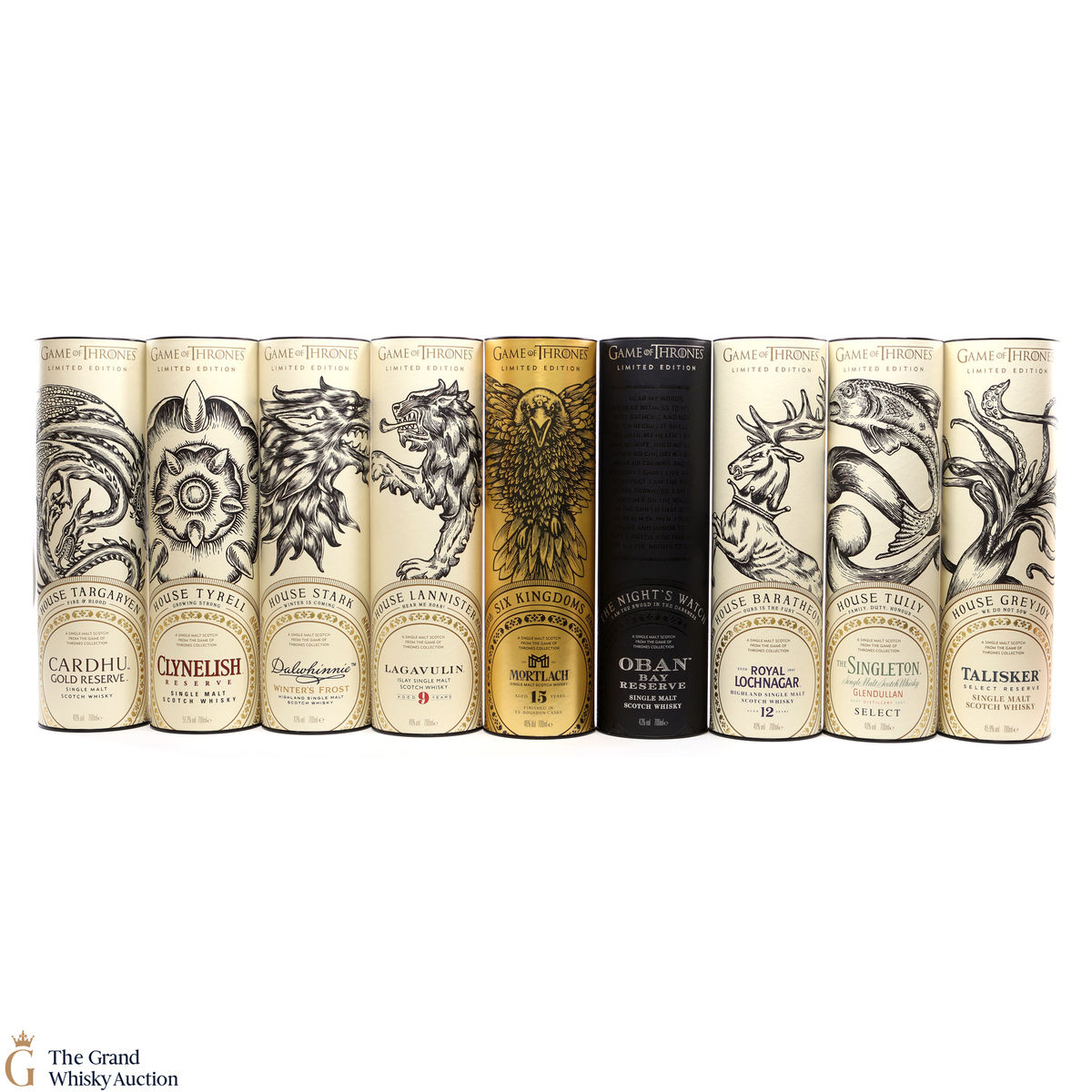 Game of Thrones series plus Johnnie Walker White Walker Game of Thrones edition, Song of Fire and Mortlach, Six Kingdoms edition. This lot includes 12 x 70cl.