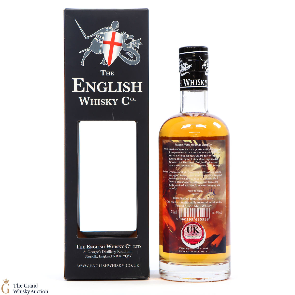 Heavily peated English Malt Whisky from Englands only distillery, the Norfolk based St George’s. A recent award winner at the World Whisky Masters. 70cl, 49%.