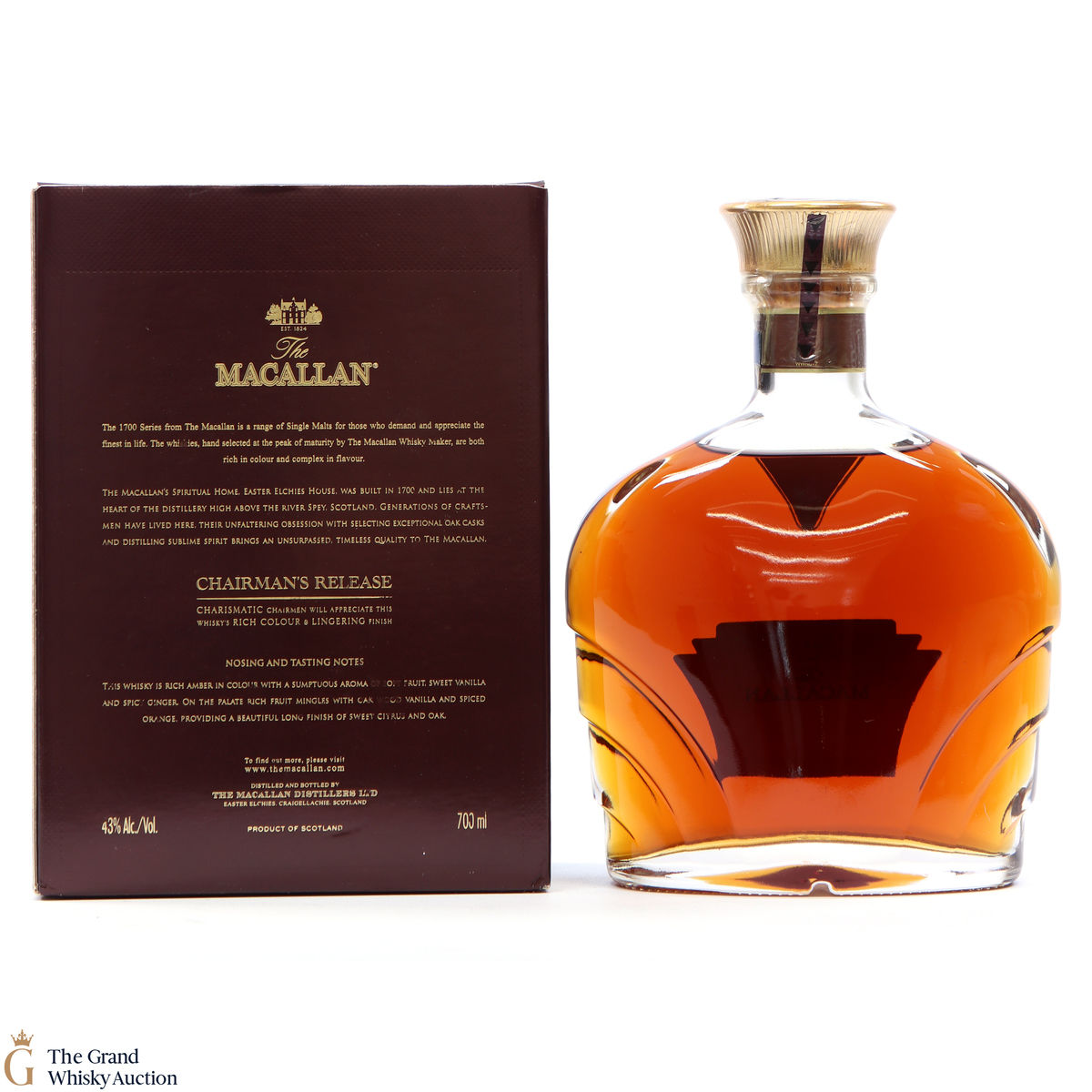 The Chairman's Release is considered the flagship of Macallan's 1700 series. The series takes its name from the year that Easter Elchies House, the home of The Macallan, was built.