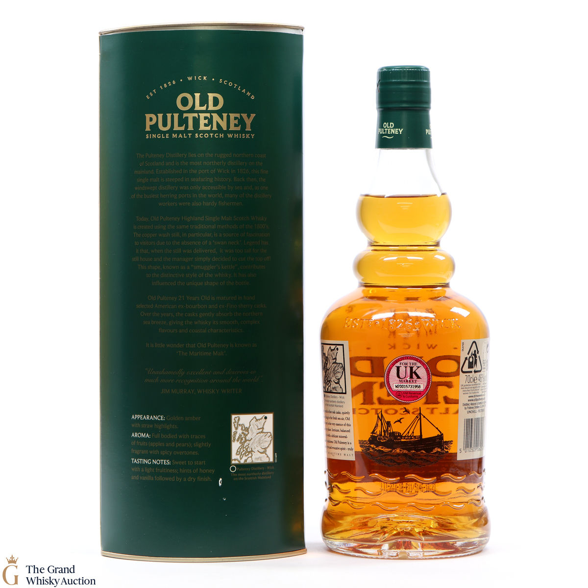 Old Pultney is known as the Maritime Malt due to the distillery location at the very North of Scotland and this is honoured with the unique shape of the bottle.