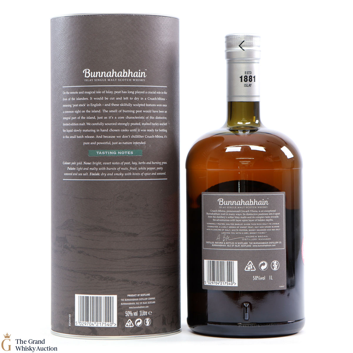 A travel retail exclusive, this Bunnahabhain release is named Cruach-Mhona which is Gaelic for "Peat Stack". This is a 1 litre bottling.