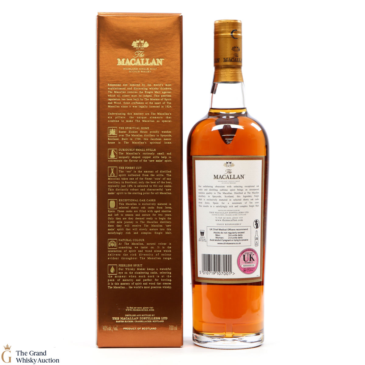 A 10-year-old single malt from The Macallan Distillery. It has been exclusively matured in selected sherry oak casks from Jerez, Spain.