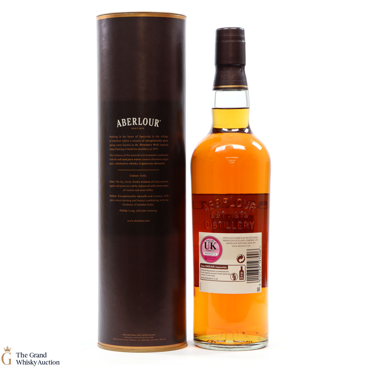 Due to the various ages of bottles and their seals, the condition of liquid is at the buyer's discretion and no claim can be lodged against failure/leakage in transit. Loss and breakage cover is available at 3% of the hammer price as standard. If the lot is not insured, no claim can be lodged against the courier or The Grand Whisky Auction for breakage or loss in transit.