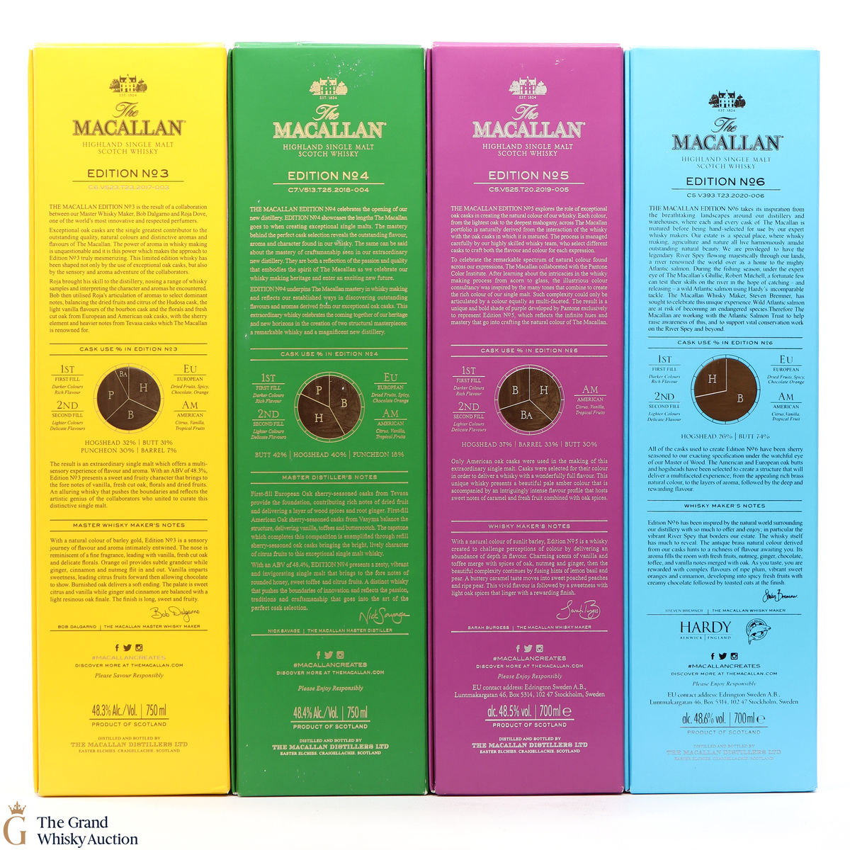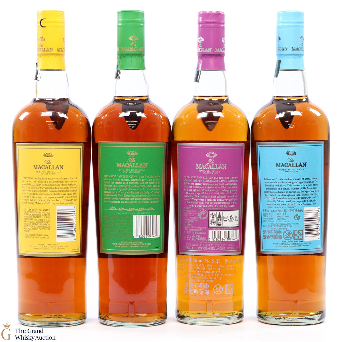 This lot brings together some bottles from the Macallan Edition set to date, comprising of Edition no. 3 4, 5 & 6 in the annual limited edition series.