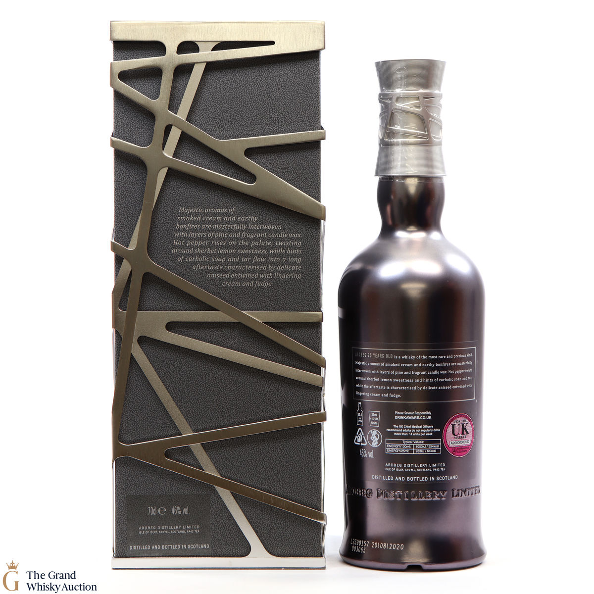 This guaranteed 25 Year old by Ardbeg has been produced from incredibly rare casks which were filled during some of the distillery's darkest day's. Known for its peated whiskies this is one of Ardbegs oldest aged whisky to join the core range. This expression proves that age cannot tame Ardbeg’s smoky power, but also that it can yield some of the most complex and majestic flavours ever from Ardbeg Distillery.