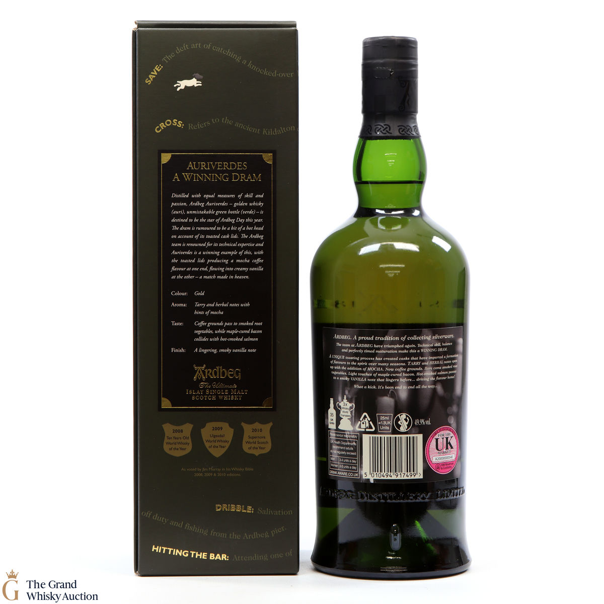 This special edition Ardbeg single malt was released on Ardbeg Day 2014. during Feis Ile. Auri(Gold) verdes (Green) it refers to the golden whisky and the iconic Ardbeg green bottle of Ardbeg whisky. It is said to be a dram of two halves - the whisky uses toasted cask lids to create Mocha Coffee flavours that team up with creamy vanilla.