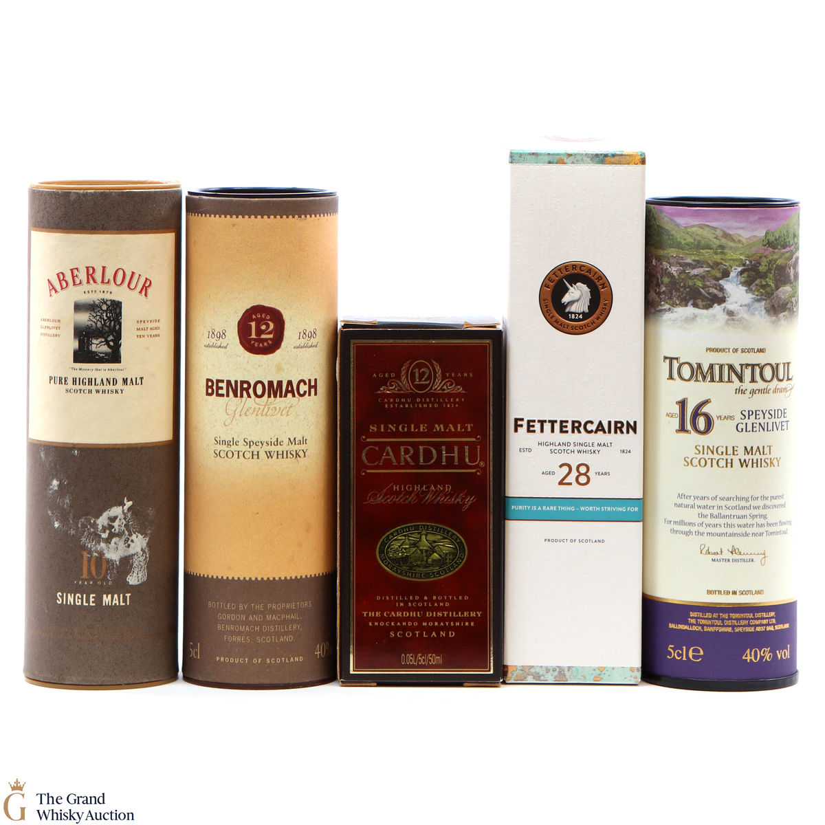 This lot contains 9 x 5cl whisky miniatures from the Speyside region: