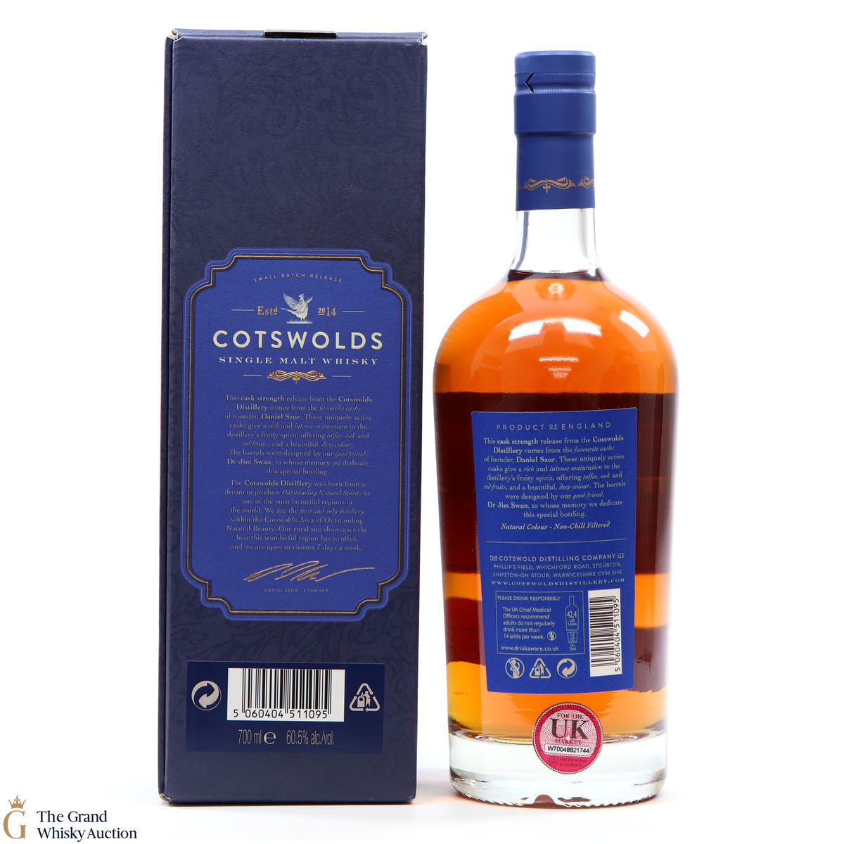 The Founder's Choice single malt from The Cotswolds Distillery is a cask strength release from the favourite casks of the founder, Daniel Szor. This cask strength malt was matured in shaved, toasted and recharred American Oak red wine casks.