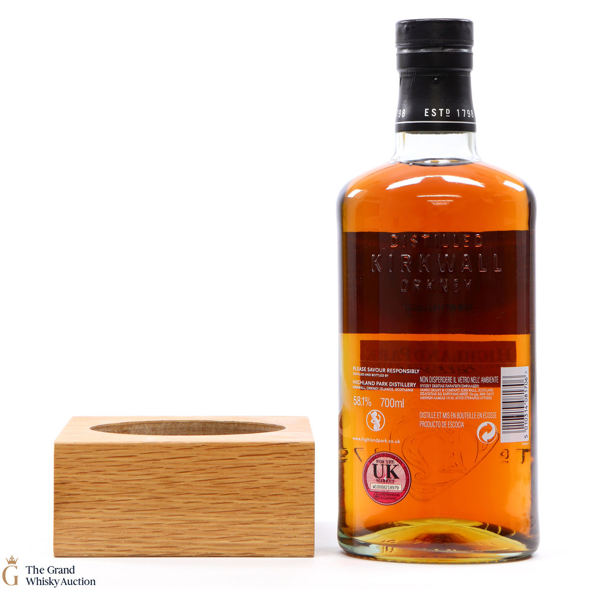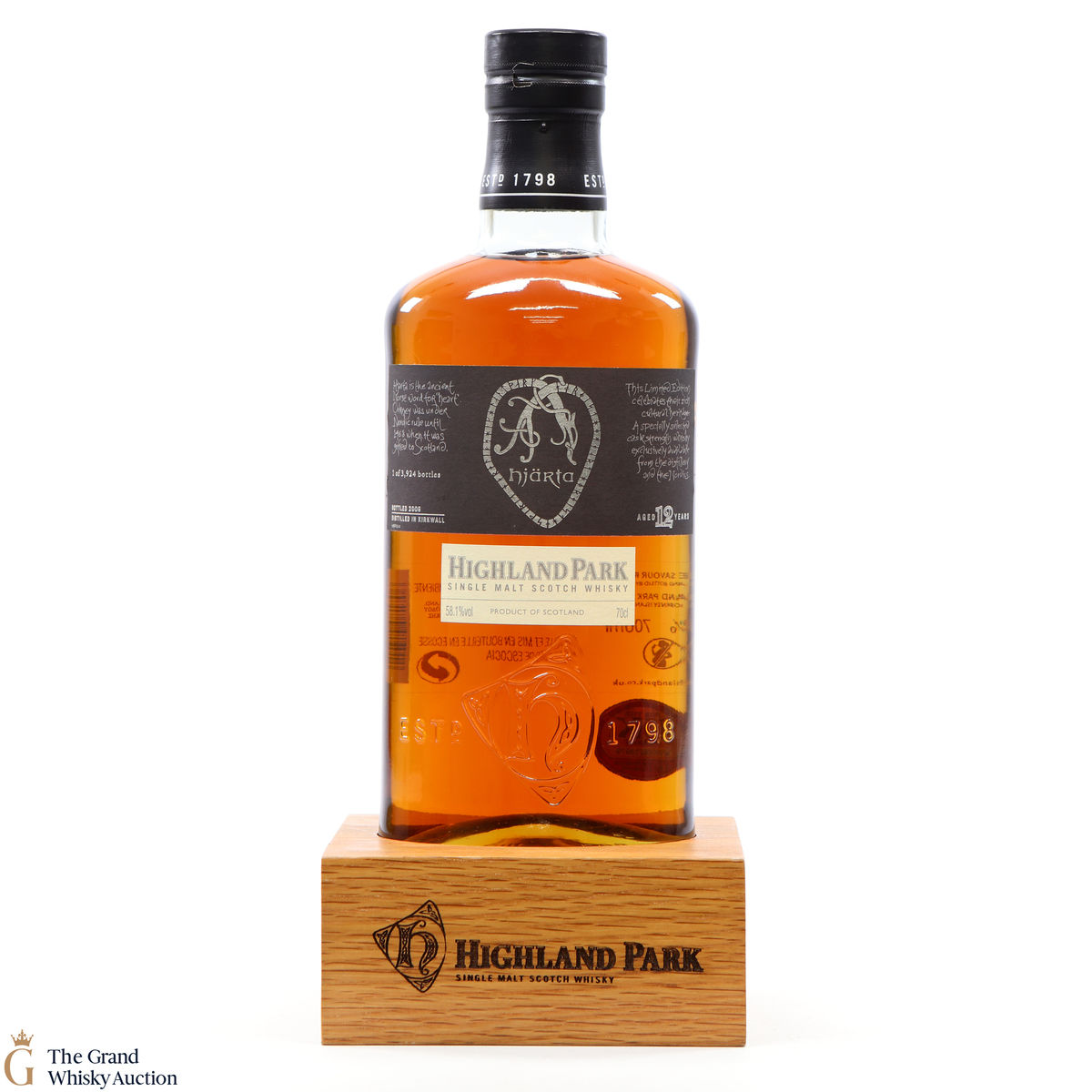 Included with this lot is a Highland Park branded wooden plinth to place your bottle of Hjarta on. Measurements are 12cm x 12.5cm.