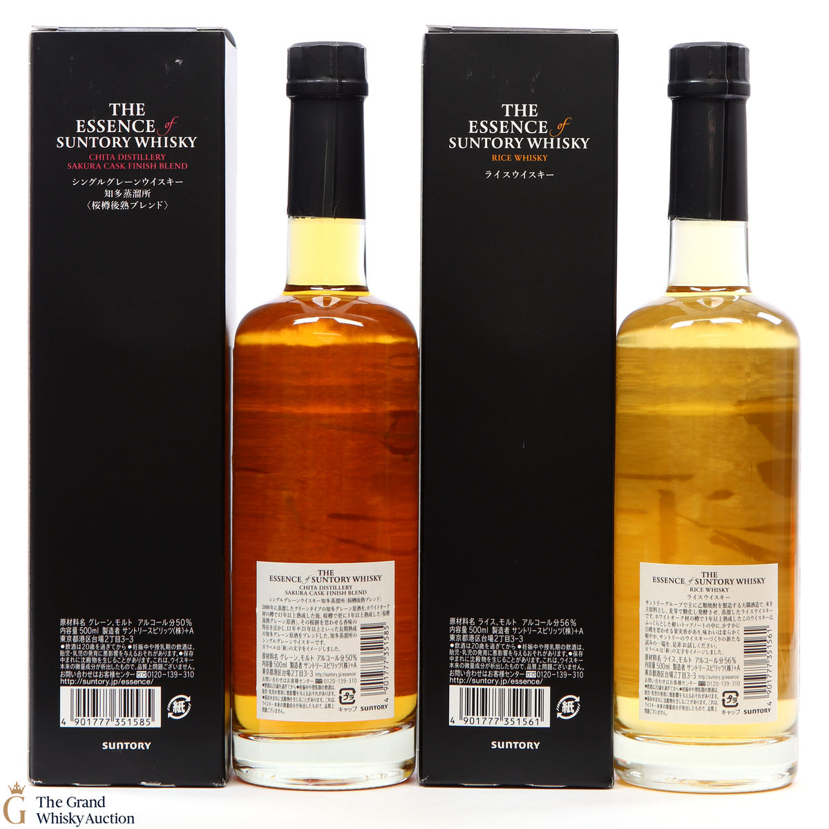 The two bottles that make up the new Essence of Suntory Volume 4: Rice Whisky and Sakura cask finished blend.