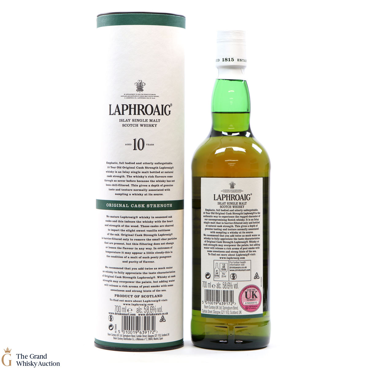 This original cask strength bottling of the medicinal 10 year old from Islay's bestselling distillery, Laphroaig. In making Laphroaig, malted barley is dried over a peat fire. The smoke from this peat, found only on Islay, gives Laphroaig its particularly rich flavour.