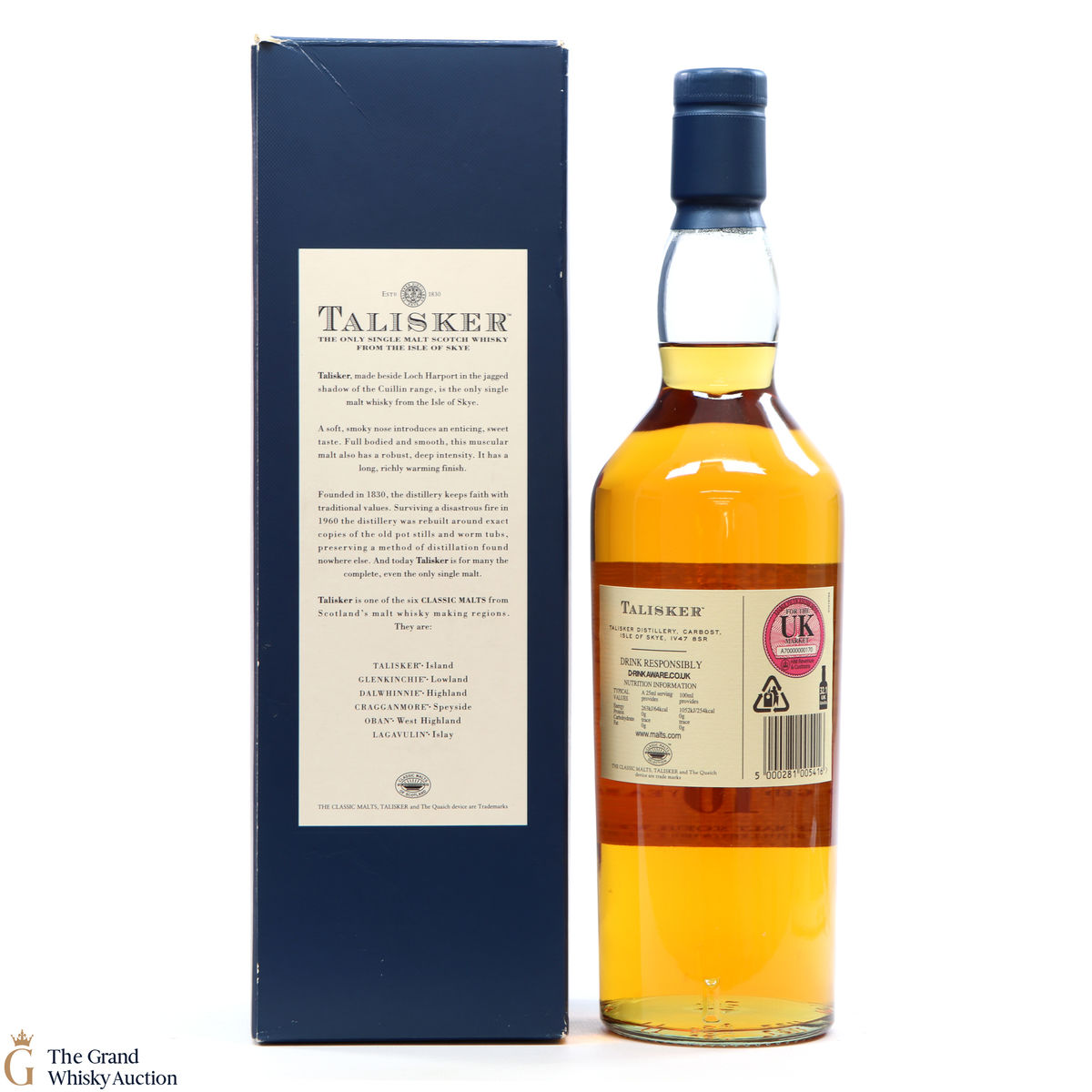 Due to the various ages of bottles and their seals, the condition of liquid is at the buyer's discretion and no claim can be lodged against failure/leakage in transit. Loss and breakage cover is available at 3% of the hammer price as standard. If the lot is not insured, no claim can be lodged against the courier or The Grand Whisky Auction for breakage or loss in transit.