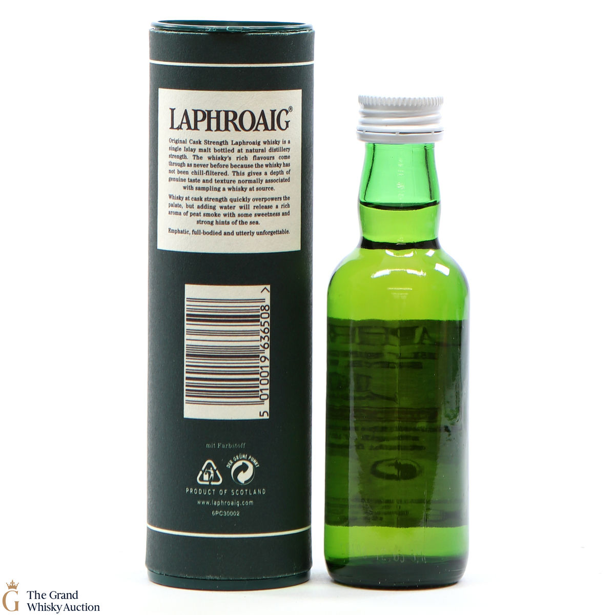 A 5cl of Laphroaig 10-year-old original cask strength, bottled at 55.7% ABV.