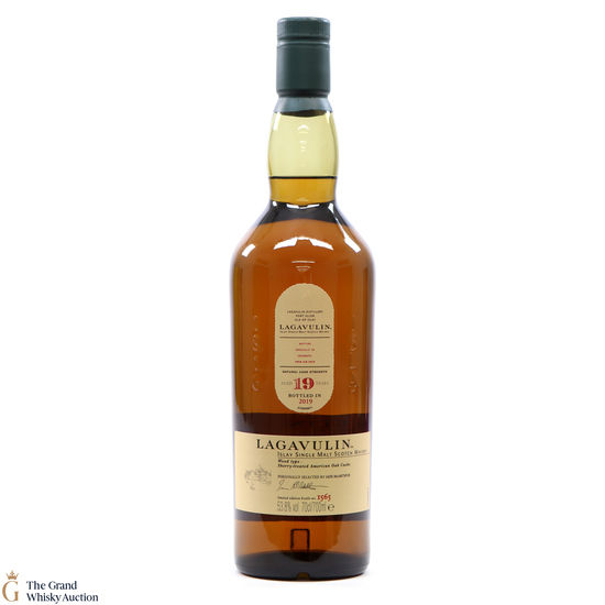 The 2019 Fèis Ìle release from Lagavulin was a 19 year old single malt, matured in three types of casks: refill American oak cask, second Sherry treated American oak cask and a European oak puncheon. 6000 bottles were released.