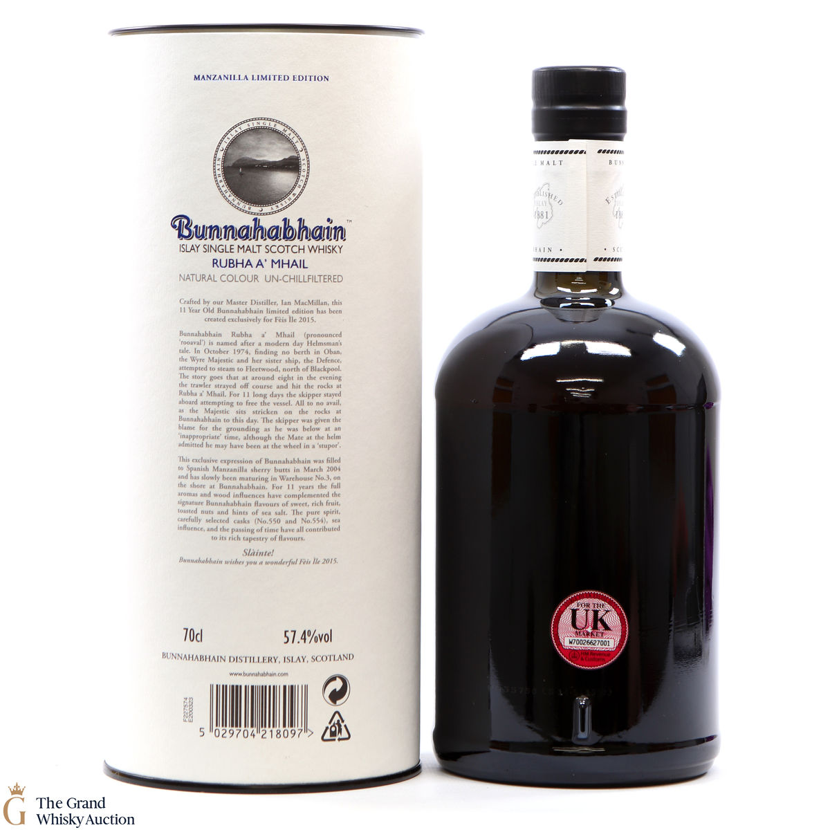 Bunnahabhain Rubha A’ Mhail is a 11-year old Bunnahabhain which was bottled for the 2015 Fèis Ìle. Aged in two Spanish Manzanilla sherry butts (#550 & #554) this is a limited edition of 1,200 individually numbered bottles.