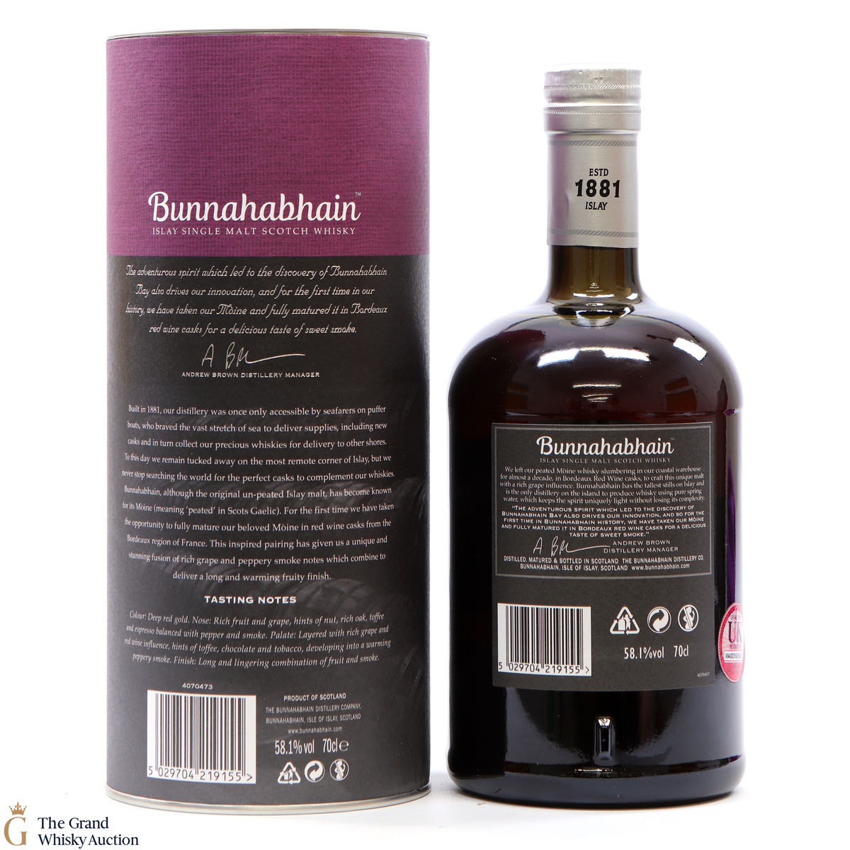 - Cask Type: Moine Bordeaux Red Wine Cask
