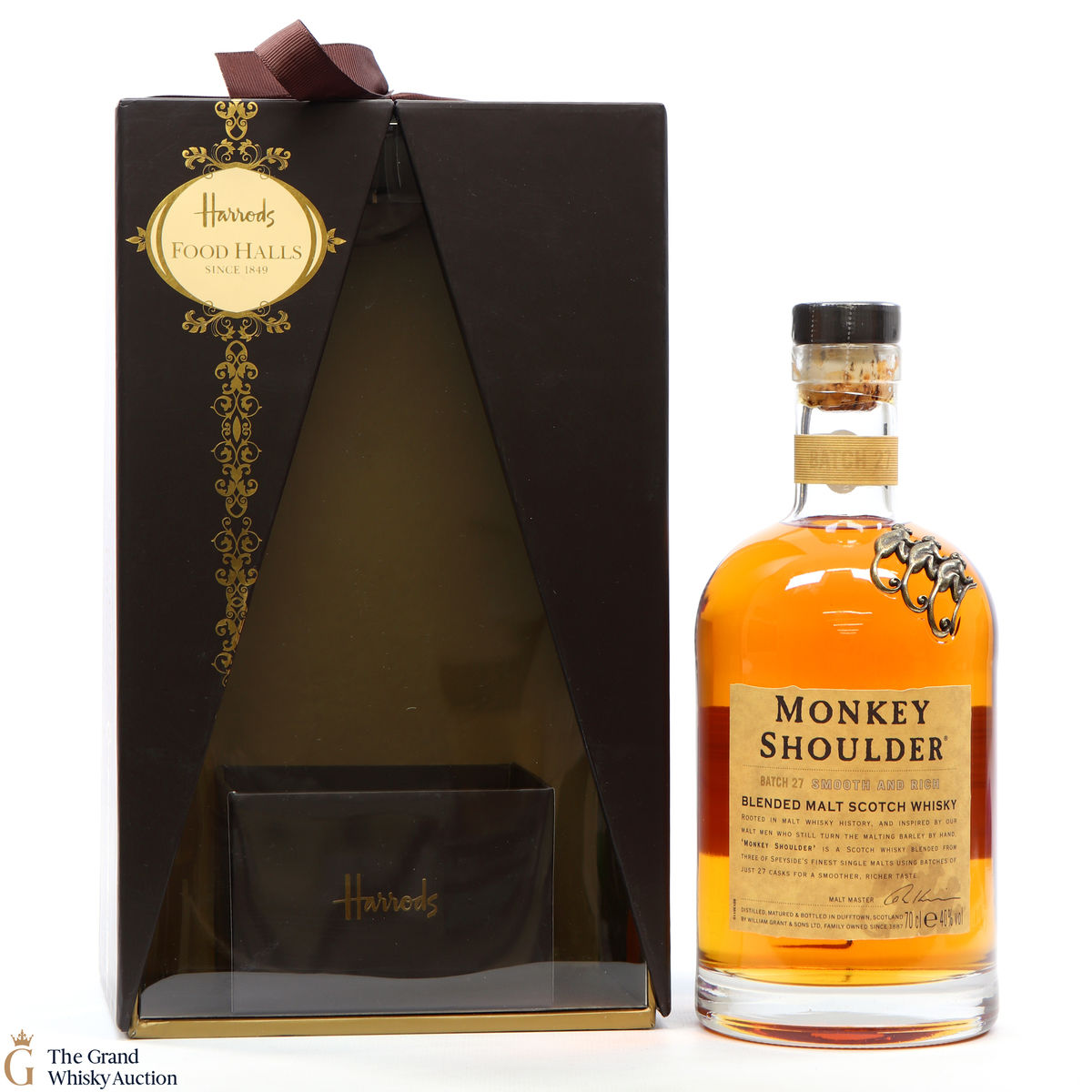 Due to the various ages of bottles and their seals, the condition of liquid is at the buyer's discretion and no claim can be lodged against failure/leakage in transit. Loss and breakage cover is available at 3% of the hammer price as standard. If the lot is not insured, no claim can be lodged against the courier or The Grand Whisky Auction for breakage or loss in transit.