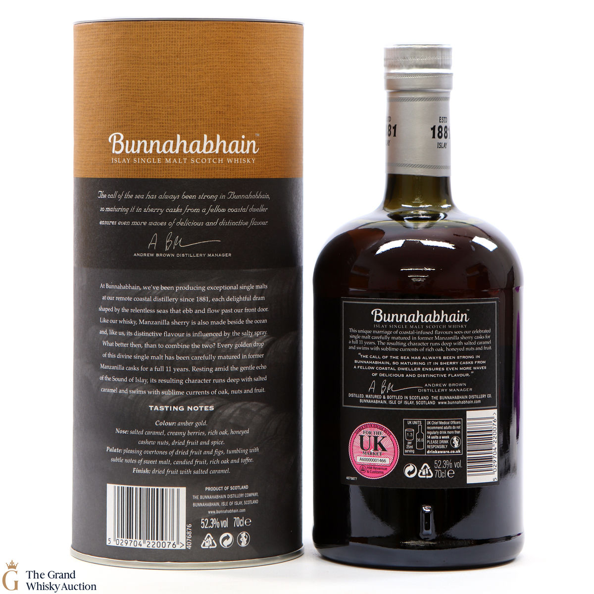 This limited release from Bunnahabhain and is a 2008 vintage Manzanilla cask matured single malt. Bottled in May 2020 at 52.3%. This 11-Year-Old, matured in warehouse 9 has rich flavours of nuts, fruits and toffee, with a salted caramel finish.