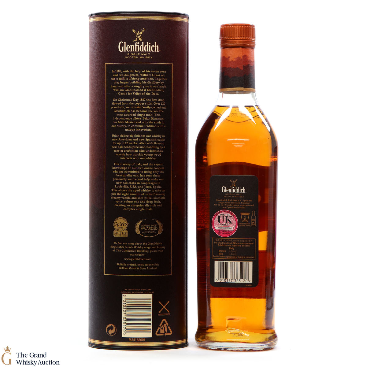 After 14 years maturing in fine American oak casks, the Glenfiddich Malt Master carefully selected virgin Spanish and American oak casks to release extra layers of aroma and flavour. This is said to be the first virgin American and European oak finished whisky in the world.