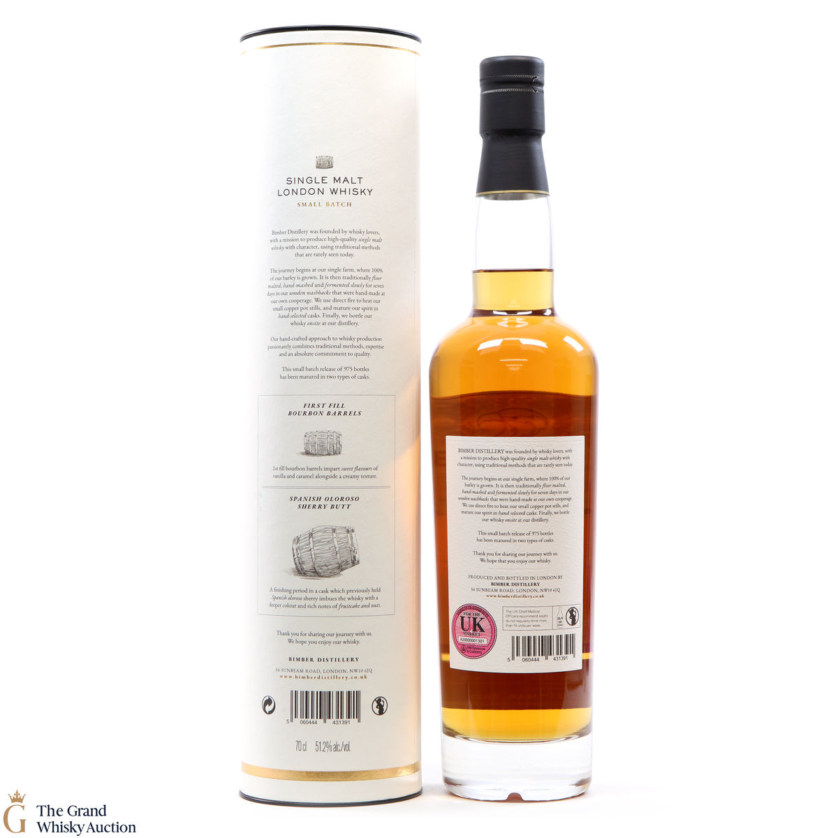 One of only 975 bottles in the Bimber Oloroso Sherry Batch 4 Small Batch release. It was carefully crafted from a vatting of ex-bourbon casks that were finished in Spanish oloroso sherry butt. It offers a silky texture with a distinctive fruit-focussed character and layers of rich, sweet intensity.