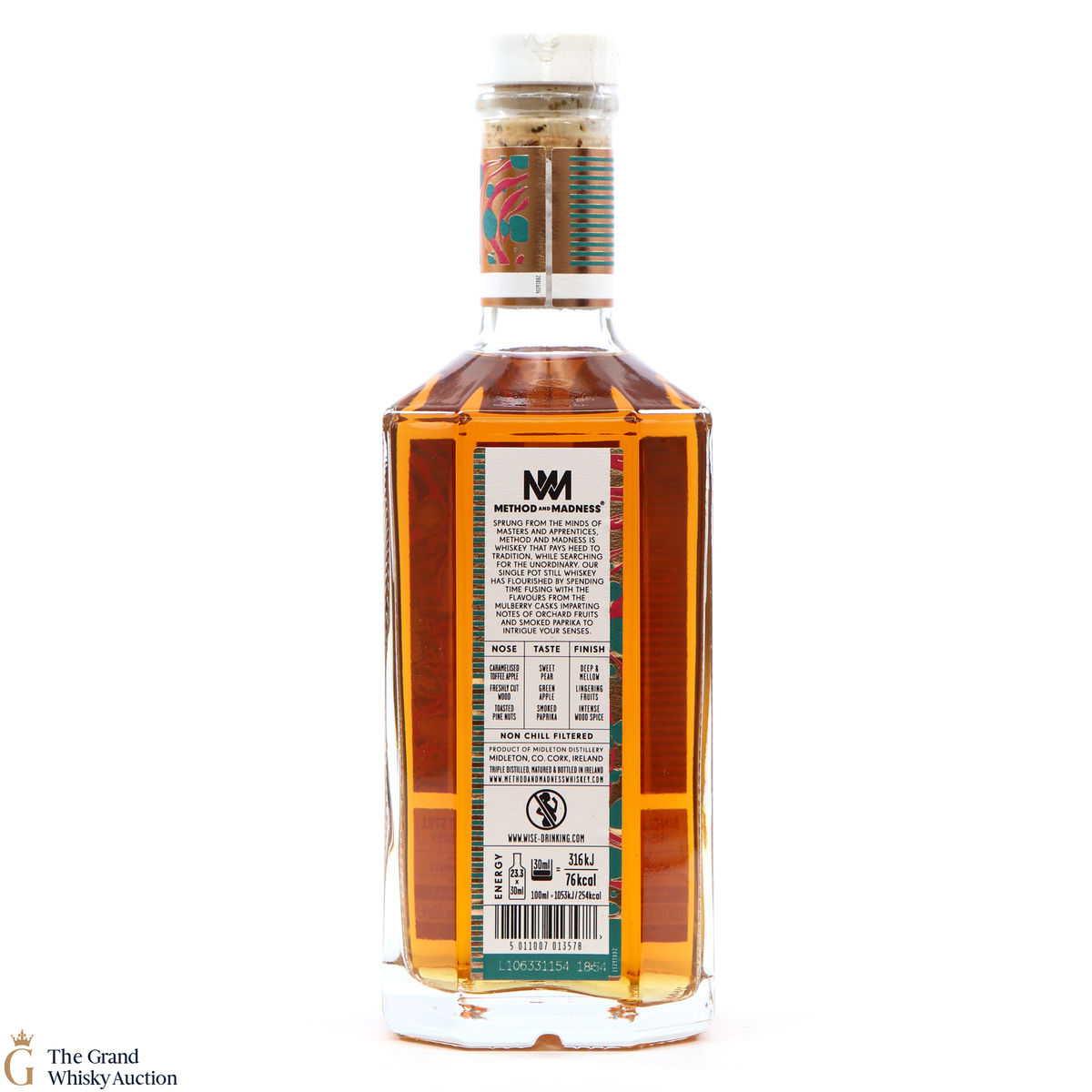 Named the 'Method and Madness', this Irish whiskey was distilled at Midleton distillery and matured in bourbon barrels before being finished in Mulberry barrels.