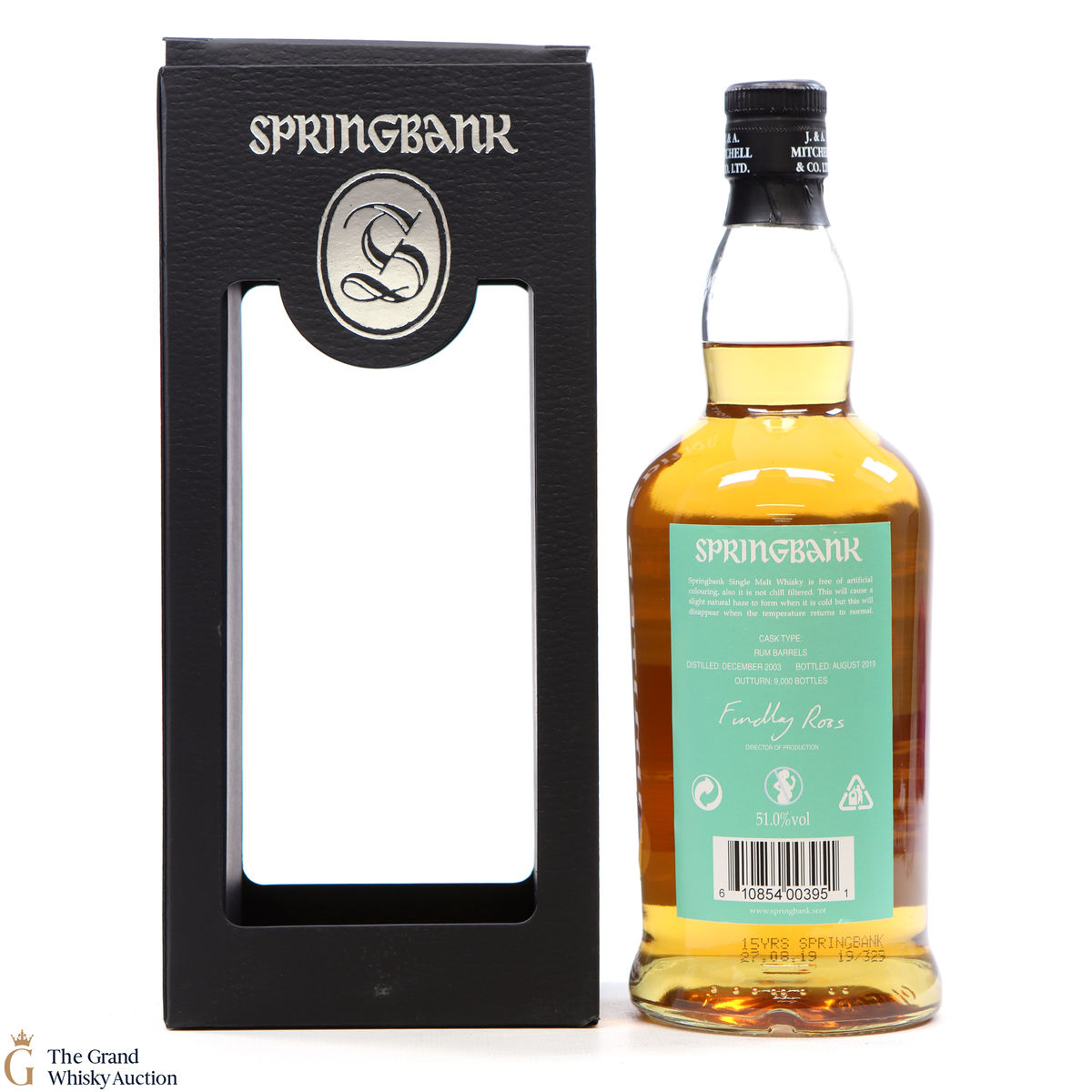 This is a limited edition, single malt Scotch whisky from Springbank distillery bottled and released in 2019. The whisky was fully matured in rum casks for 15 years. Bottled at a cask strength of 51.0% this is one of only 9,000 bottles released worldwide.