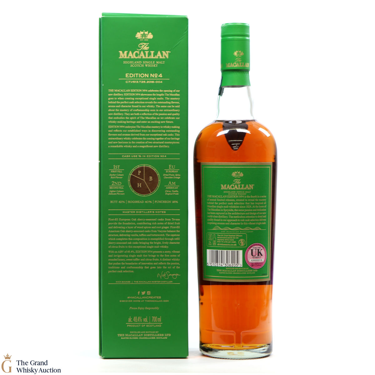 The fourth release in the Edition Series from The Macallan, this Speyside single malt is a celebration of the distillery's whisky making heritage, combining a unique selection of oak cask styles. Edition No.4 reflects the craftsmanship and pioneering design of the new Macallan distillery.