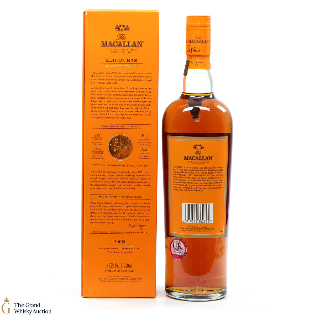This is the second release from the Macallan Edition series. Edition No.2 is a collaboration between Macallan's master blender Bob Delgarno and legendary Spanish chefs Joan, Josep and Jordi Roca. The Rocas are the three brothers behind El Celler de Can Roca (named Best Restaurant in the World twice by Restaurant magazine). This single malt was drawn from a combination of sherry puncheons, butts and refill hogsheads.