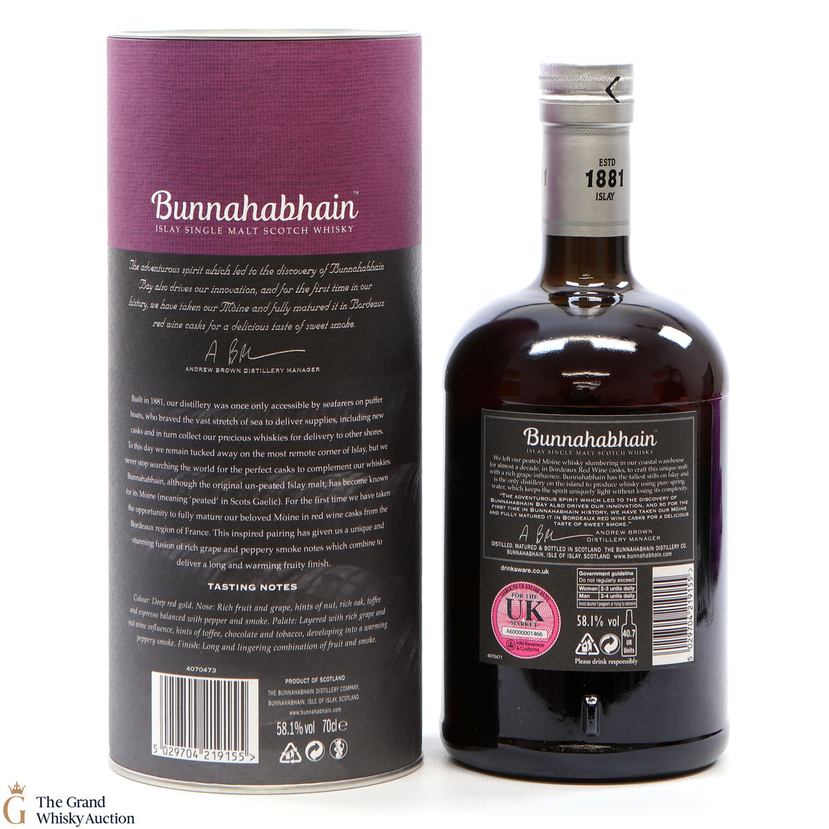 - Cask Type: Moine Bordeaux Red Wine Cask