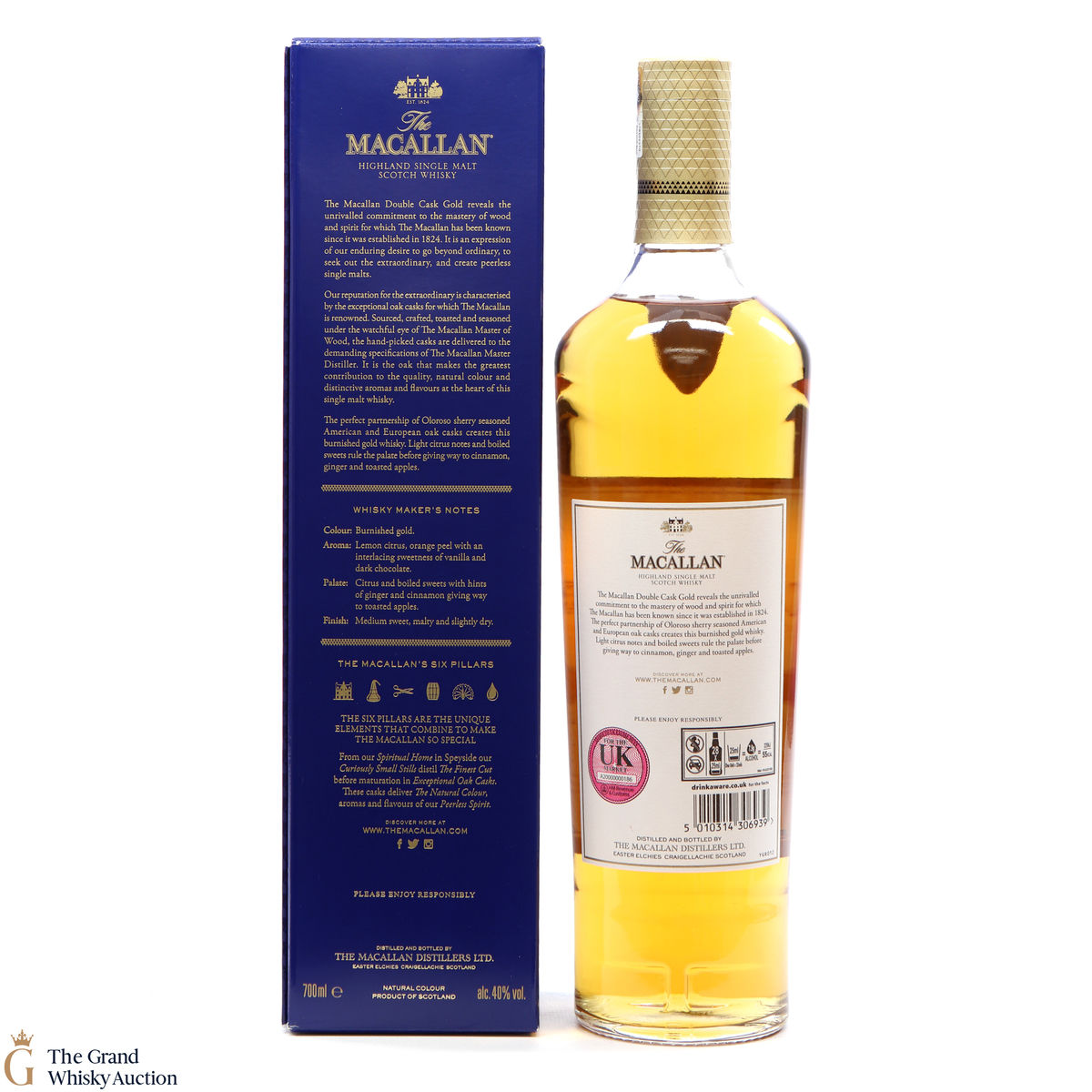 Macallan Gold was first introduced in 2012 as part of the distillery's 1824 range of non-age statement expressions, before being renamed Macallan Gold Double Cask in 2018 as part of the new core range. Matured in a combination of first fill and refill American oak and European oak sherry casks to create an incredibly smooth and rich single malt. Soft gold in colour, this is the lightest expression of the Macallan range, but still packed with typical Speyside Macallan flavours.