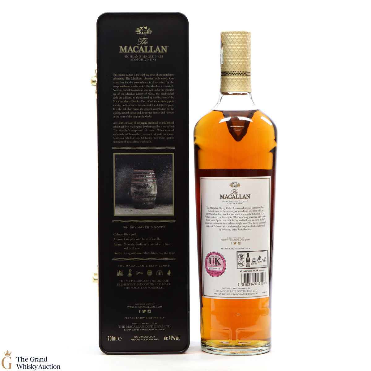 This limited-edition Macallan 12 year old was exclusively matured in sherry seasoned oak casks, from Jerez. It comes in a metal presentation tin featuring an image of a barrel shot by Magnum photographer Alex Soth.