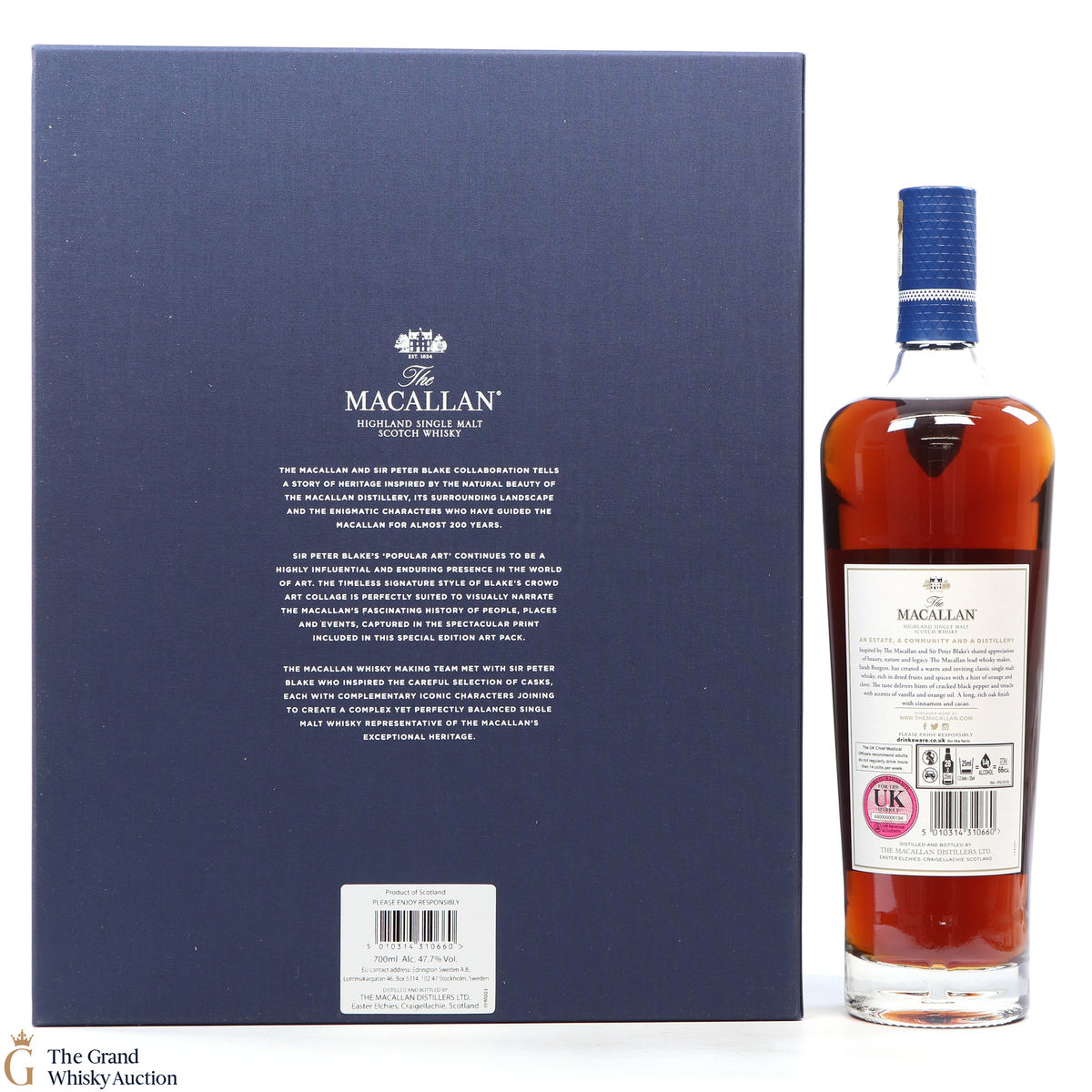 Part of The Anecdotes of Ages Collection, this is an extraordinary art and whisky collaboration with Sir Peter Blake. Being the third collaboration between the Macallan Distillery and Sir Peter Blake, this single malt was created to commemorate Sir Peter Blake's visit to The Macallan Estate. An Estate, a Community and a Distillery tells the story of some of the colourful characters from the distilleries past and present and features a label designed by Sir Peter Blake.