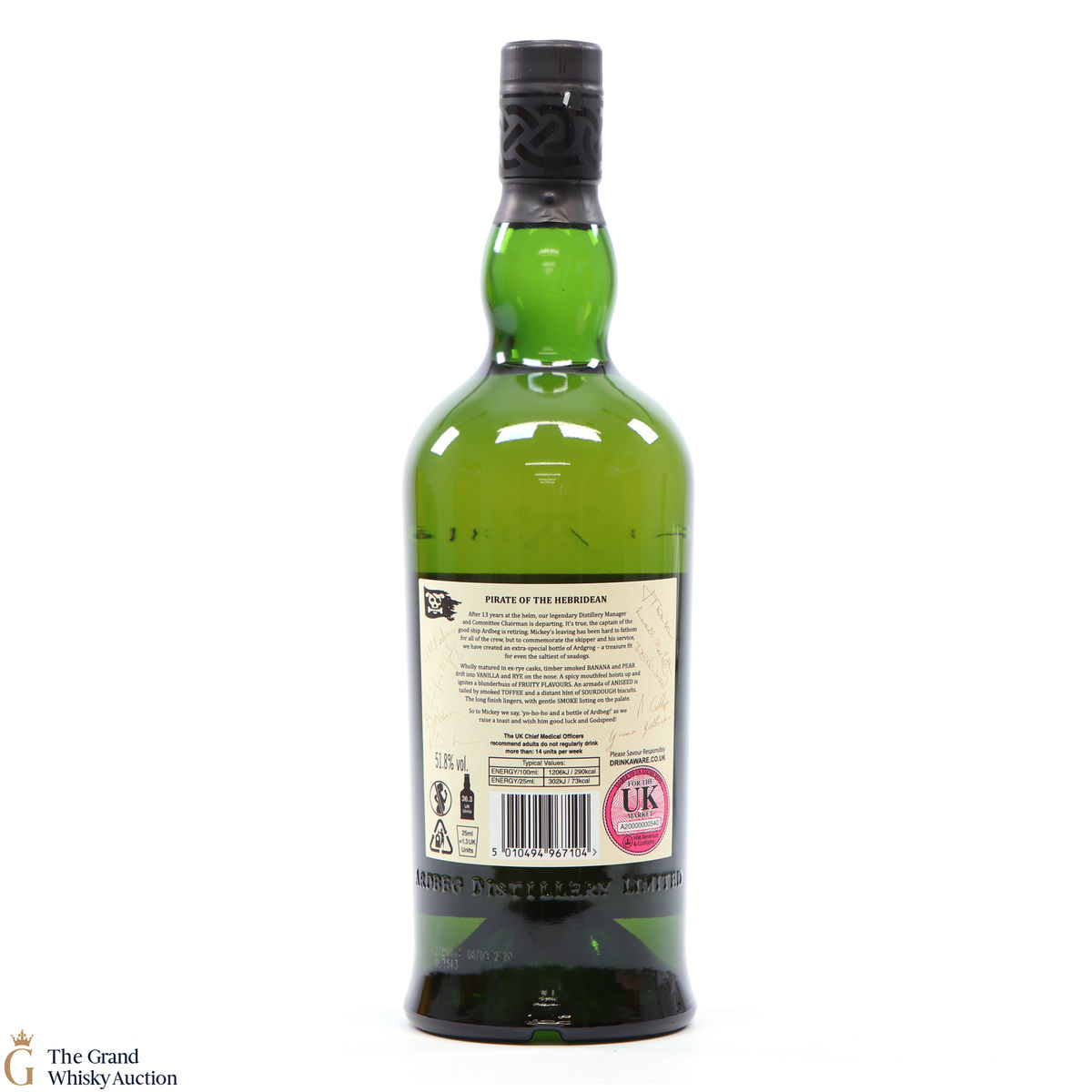 A bottling in honour of the legendary Distillery Manager and Committee Chairman Mickey who is departing after a great 13 years. Captain of the good ship, he is now retiring and so this special bottle has been created to commemorate his service. A special treasure indeed fit for the saltiest of seadogs.