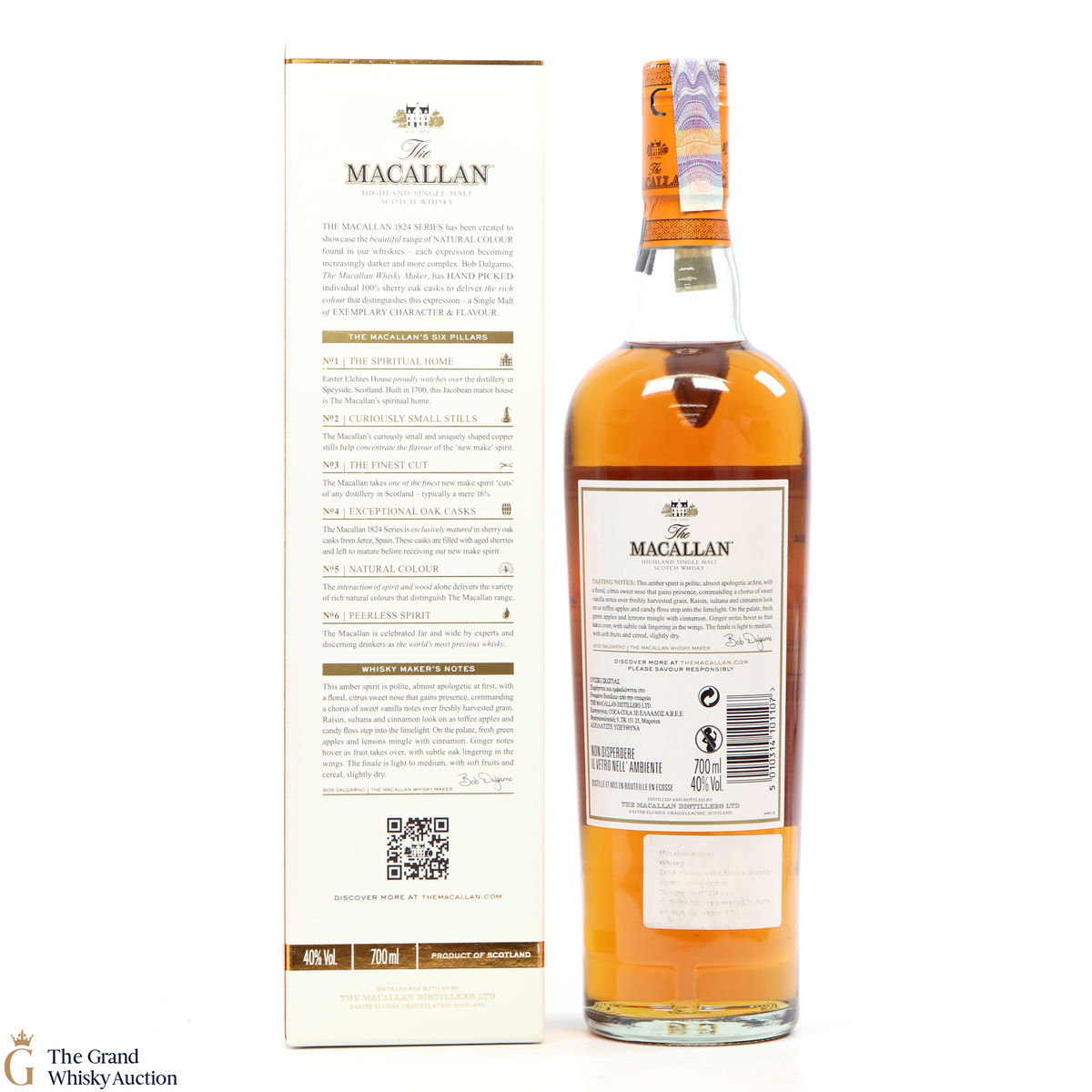 The Macallan Amber forms part of The Macallan 1824 Series which exemplifies their commitment to 100% natural colour, present in each and every Macallan single malt. This non-age statement range of Speyside single malts concentrates on colour; the theory is that by using 100% sherry casks and natural colour, the darker the whisky, the older and more complex.