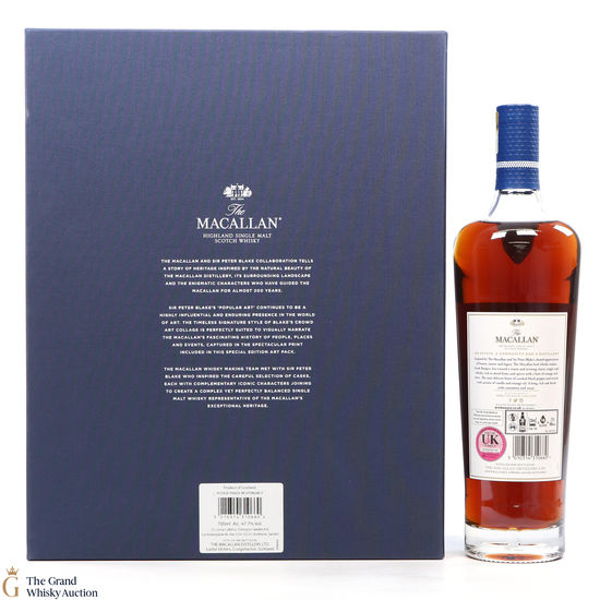 Part of The Anecdotes of Ages Collection, this is an extraordinary art and whisky collaboration with Sir Peter Blake. Being the third collaboration between the Macallan Distillery and Sir Peter Blake, this single malt was created to commemorate Sir Peter Blake's visit to The Macallan Estate. An Estate, a Community and a Distillery tells the story of some of the colourful characters from the distilleries past and present and features a label designed by Sir Peter Blake.