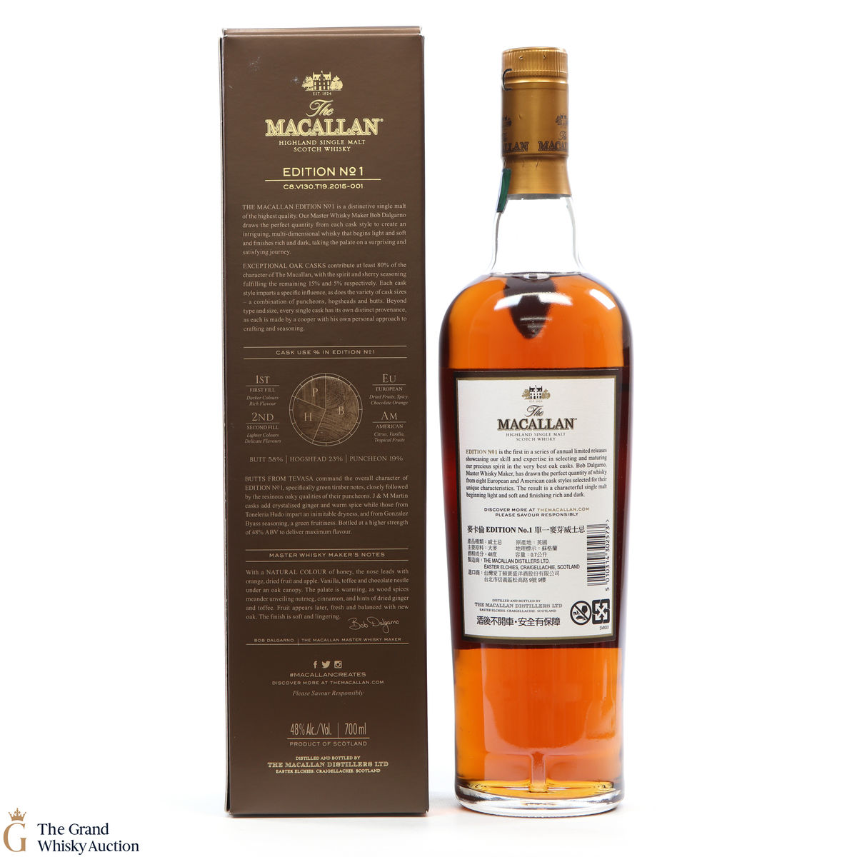 The Macallan Edition No. 1 is the debut expression in the Edition Series. This is a limited edition drawn from eight European and American oak cask styles selected for their unique characteristics.