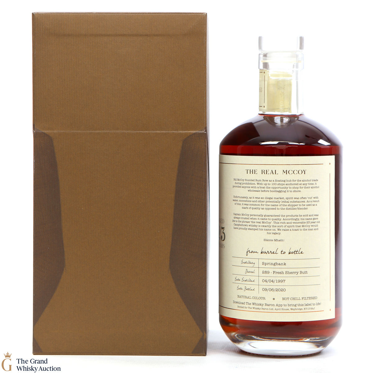 Distilled at Springbank Distillery on 4th April 1997, this single malt has aged for 23 years in Fresh Sherry hogshead #289. It was then bottled by The Whisky Baron on 6th June 2020 at 54.6% ABV for Renaissance. This is one of only 553 bottles.