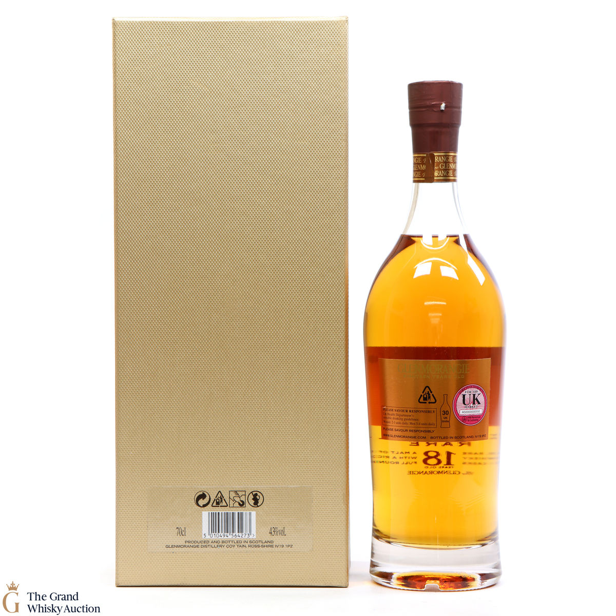This bottle is an 18 year old Extremely Rare, Highland single malt produced by Glenmorangie. It has been perfected by the sixteen men of Tain who have specially aged this bottle for 18 years in superior oak casks and a period in Oloroso Sherry casks.