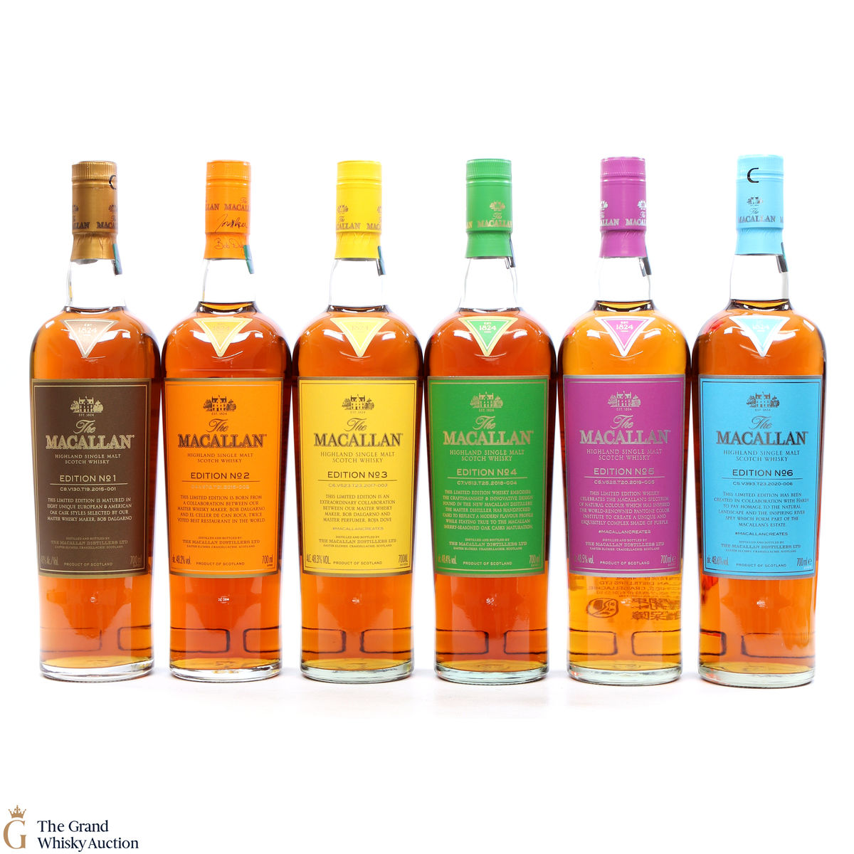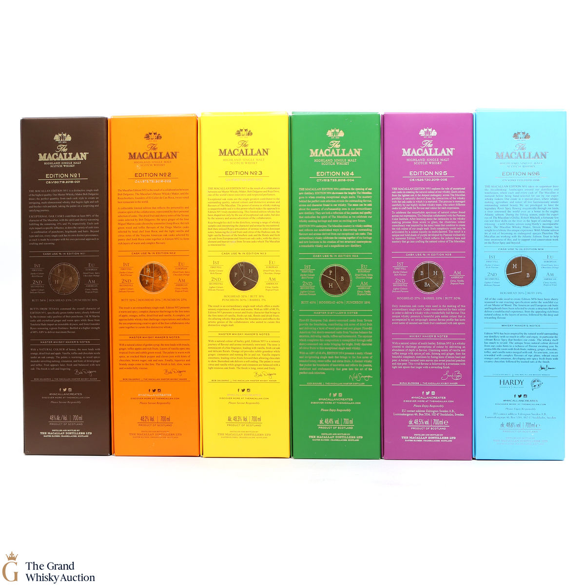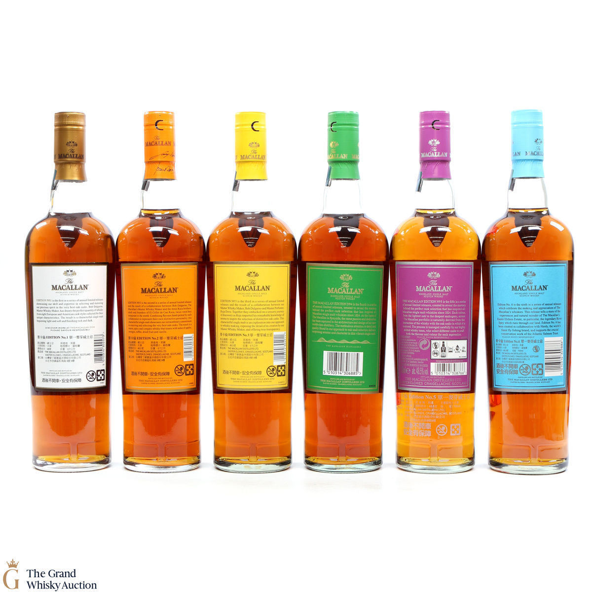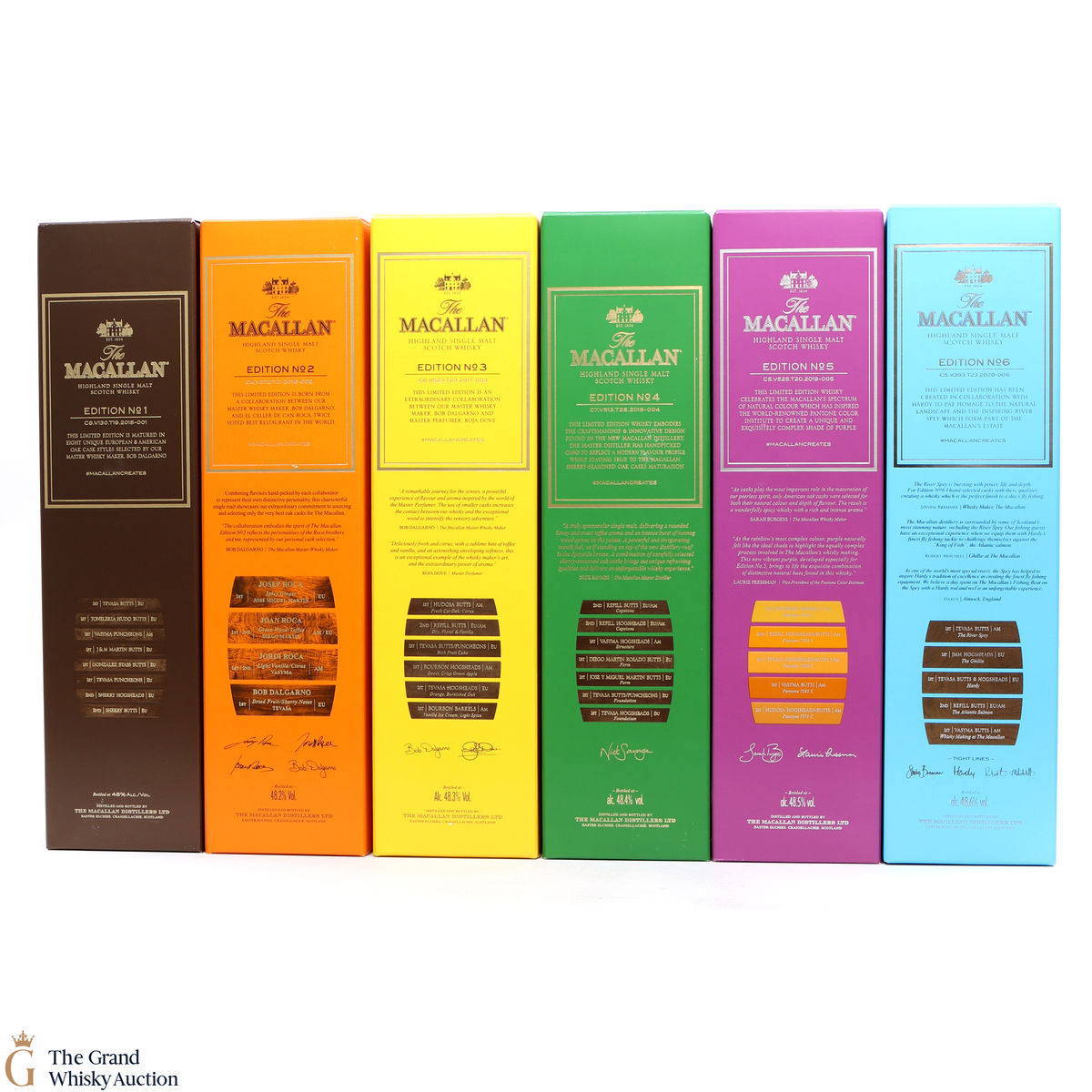 This lot brings together the Macallan Edition set to date, comprising of Edition no. 1, 2, 3 4, 5 & 6 in the annual limited edition series.