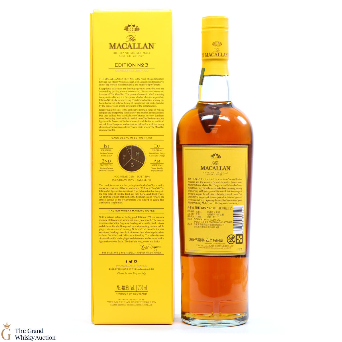 Edition No.3 was a collaboration between master perfumer Roja Dove and master whisky maker Bob Dalgarno. With Dove's remarkable sensory knowledge, Dalgarno shaped the character of Edition No.3 from a combination of European and American oak casks to create a deliciously sweet, single malt with floral notes.