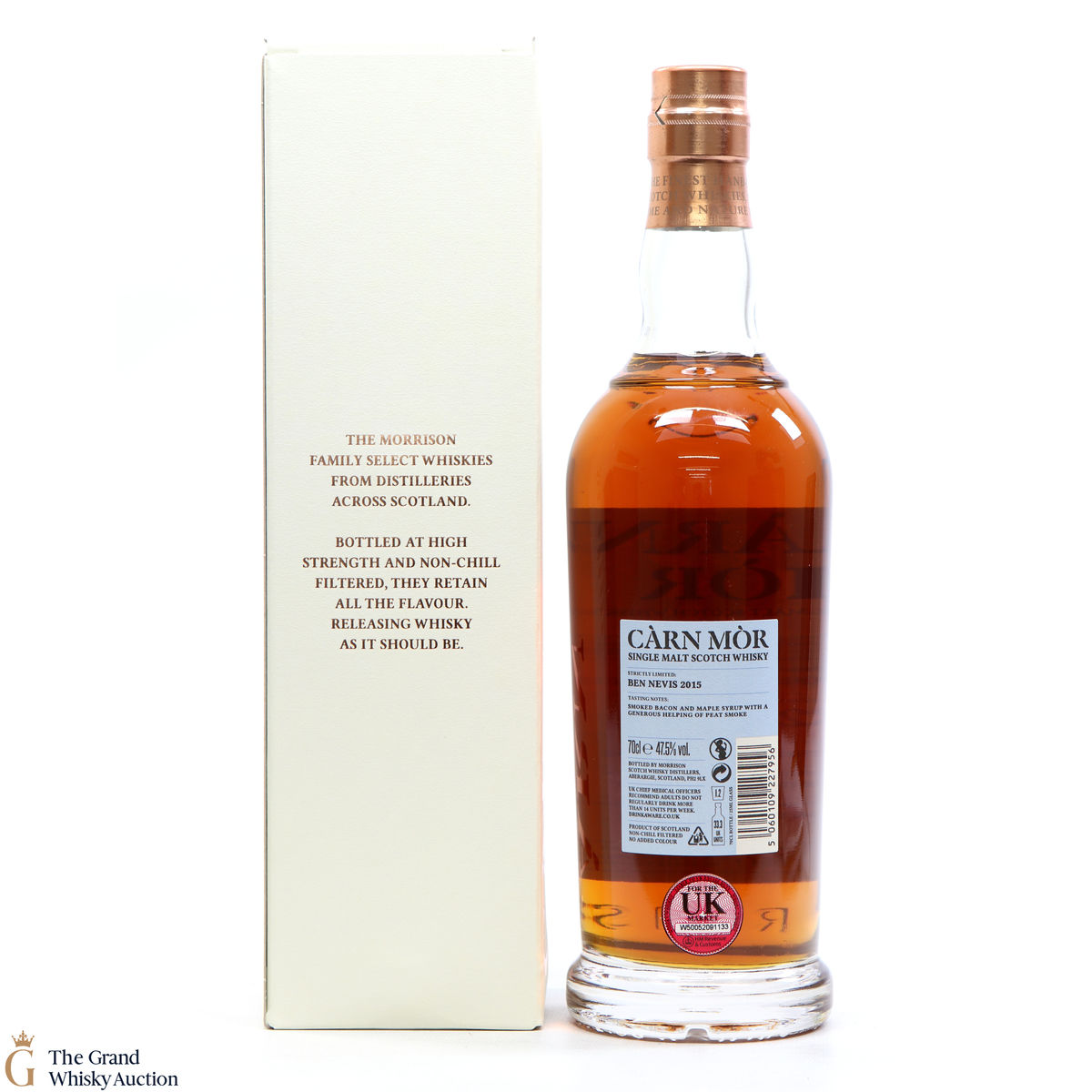 This limited edition bottle of single malt was distilled at Ben Nevis distillery and bottled by Carn Mor. Distilled in 2015, this whisky was held in Sherry Hogheads and bottled after 6 years in 2021.