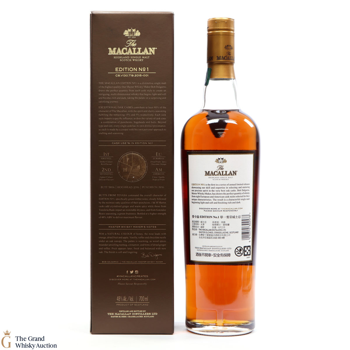 The Macallan Edition No. 1 is the debut expression in the Edition Series. This is a limited edition drawn from eight European and American oak cask styles selected for their unique characteristics.